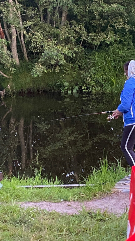 Приехали посидеть из Питера, покормить комаров, погипнотизировать поплавок. Не рассчитывали что-либо поймать (да и не хотели), хотелось посидеть в спокойствии вдали от города, но при этом с какими-то удобствами У ребят в карп.хаузе два водоема: река за домиками и пруд. Сначала мы пошли на реку и через пару часов сбежали оттуда, так как местная рыба съела почти всех наших червяков. Поймали штук 30 красноперок и верхоплавок, всех отпустили От греха подальше пошли на пруд, чтобы хотя бы там спокойно посидеть. Часа два все было нормально, рыба ходила вокруг, не донимая нас поклевками. И уже под самый конец ближе к берегу за 15 минут были пойманы три линя: два по 750гр и один на 1.15кг Завершение получилось эмоциональное, давно я такого азарта не испытывал) Ребята, которые держат пруд, со всем помогали и все объясняли, сервис на прекрасном уровне, рыбалка тоже, только сделайте пожалуйста что нибудь с рыбой в реке, она слишком хитрая, червяков с ней не напасешься