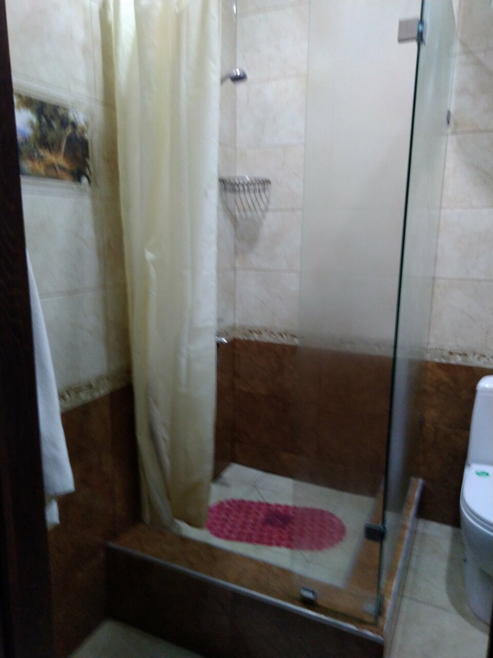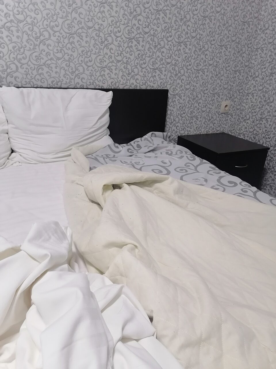 Снимали трёхместный номер вдвоём(номер находился при входе справа), с дороги очень устали после душа прилегли посмотреть телевизор и услышали запах пота от покрывала, рассмотрели его снизу вместо белого цвета оно стало жёлтое, пододеяльник разорван, одеяло двуспальное с неприятным запахом и грязное. На первый взгляд все прилично в номере, вложены деньги в ремонт, хороший унитаз, шкаф-купе, одноразовые тапочки, зубные щётки, мыло, шампунь, чайник, кондиционер, телевизор. Когда увидели и услышали запахи чужих людей от покрывала и одеяла… впечатление было испорчено. Администратора в 11 часов вечера на рецепции не было, утром выезжали в 8 тоже не было.