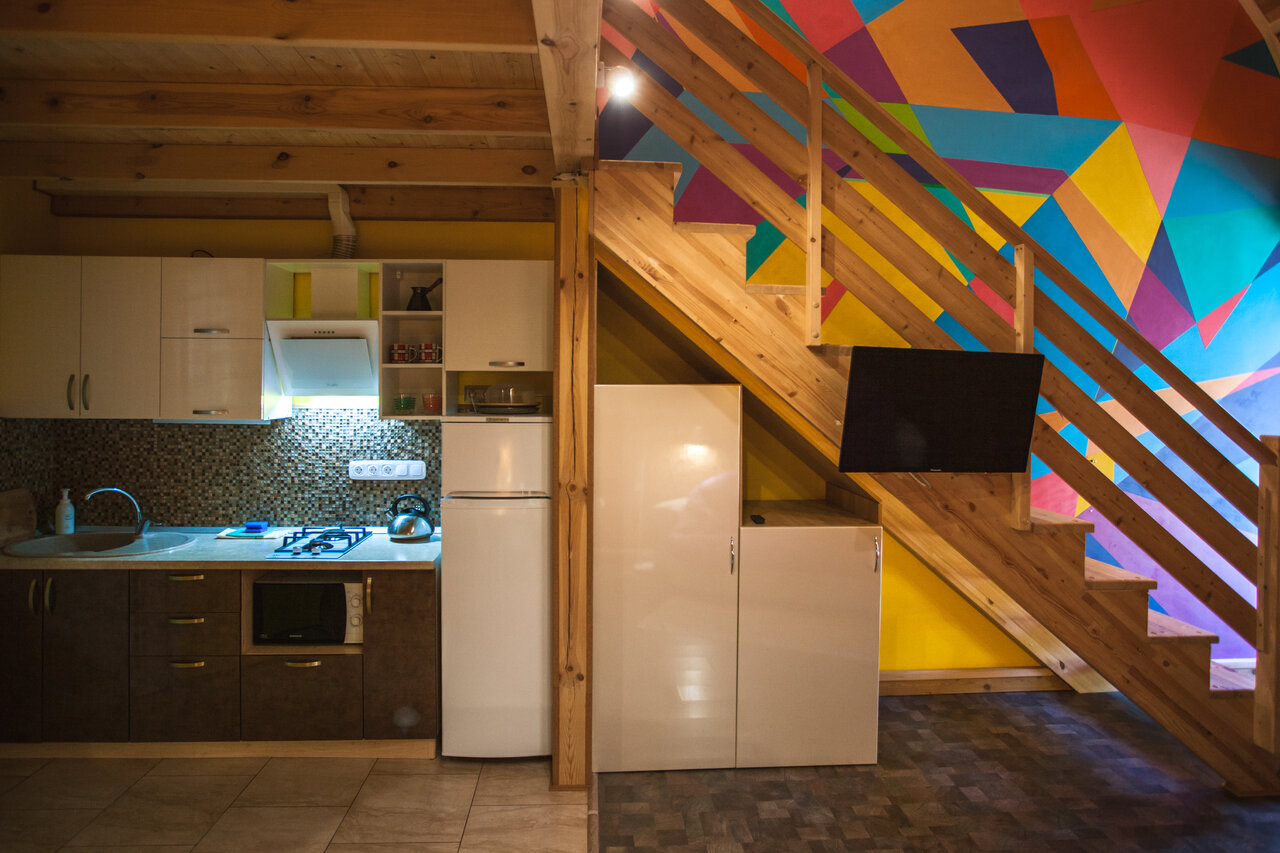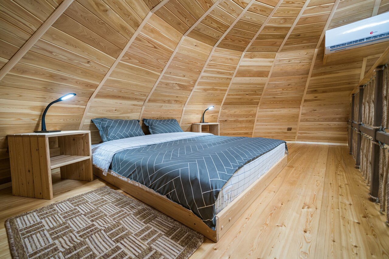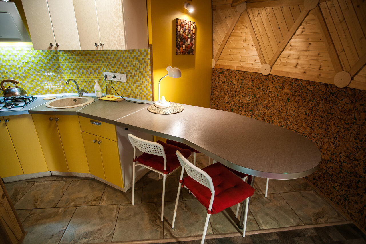 - В домиках есть всё необходимое (плита, посуда, холодильник, Wi-Fi, кондиционер).