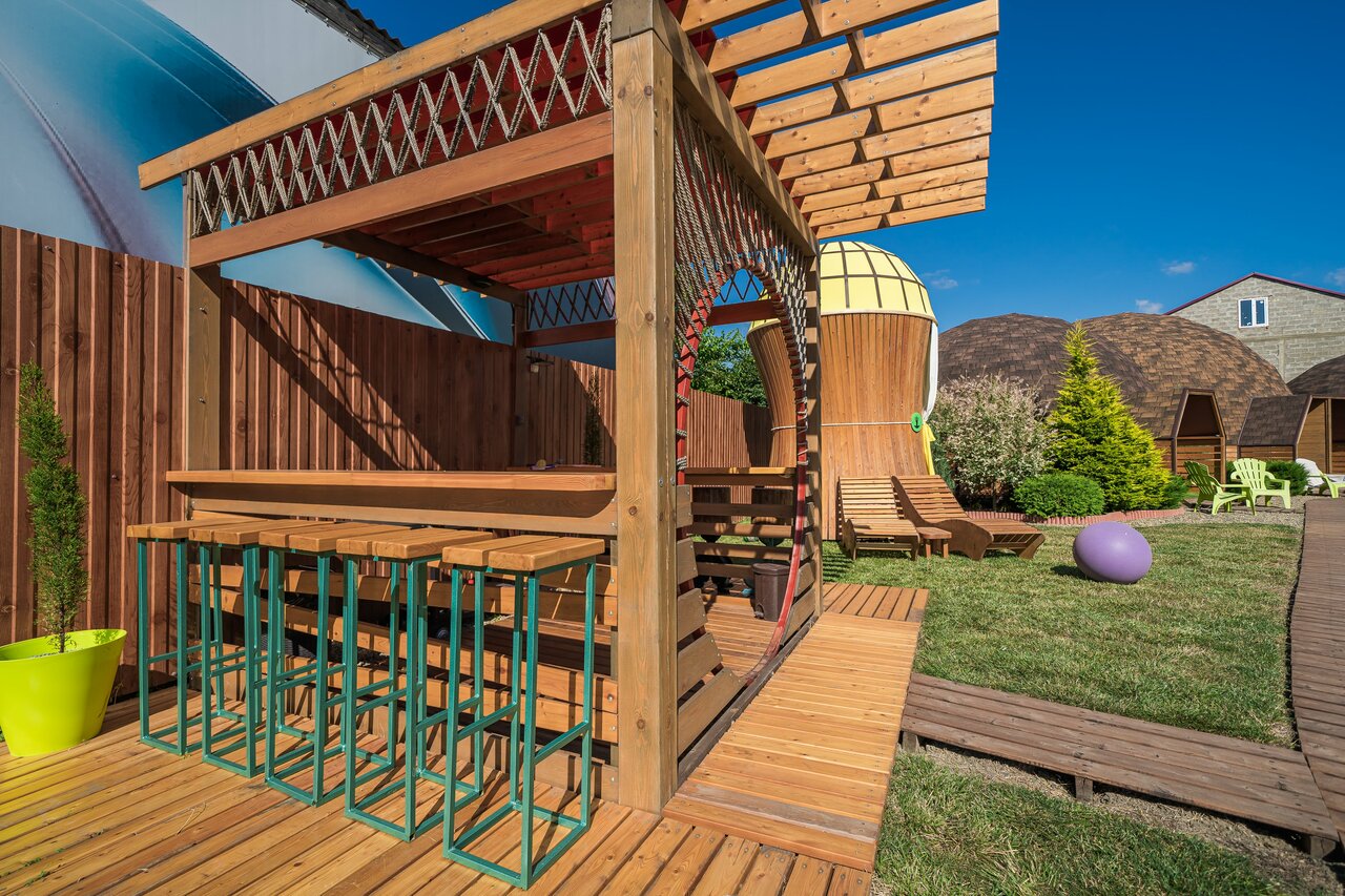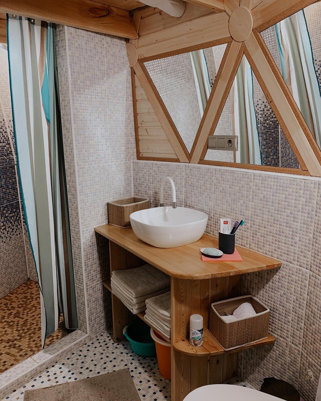 Очень милое, уютное местечко. Деревянные купольные домики, оформленные с большой любовью к гостям. Много света, воздуха, тепла и прохлады, по желанию. Ещё бы баньку), чтобы погреться зимой или осенью. В межсезонье в посёлке тихо, на море почти никого нет. Кто любит уединение, лучше места не придумать. Во дворе есть уютные беседки, мангал зона, гамаки и вигвамчик для йоги. Приезжайте, вам будут рады. Хозяева этого таинственного уголка окружают заботой, встречают с теплом и провожают с доверием. Спасибо, Саша! Спасибо, Марго!