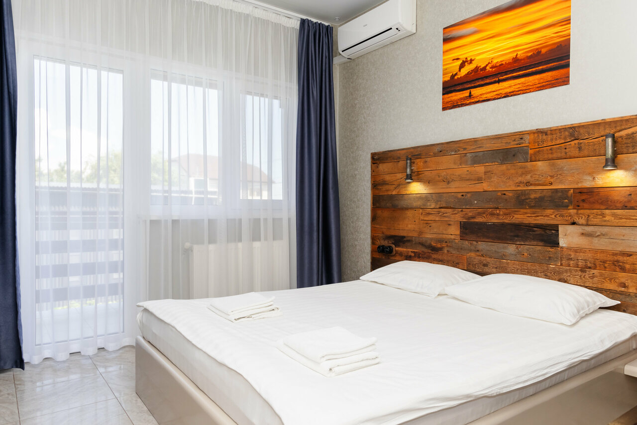 Сеть гостиниц, расбросаны по территории станицы Благовещенской. Номер чистый уютный, свежее белье. До моря далеко (особенно если вы с детьми). Вроди как ходит ‘поровозик’ грубо говоря маршрутка (но мы не застали, т. к. после карантина ещё данная опция не работала. Есть столовая на территории, ассортимент еды судный, но есть что поесть.