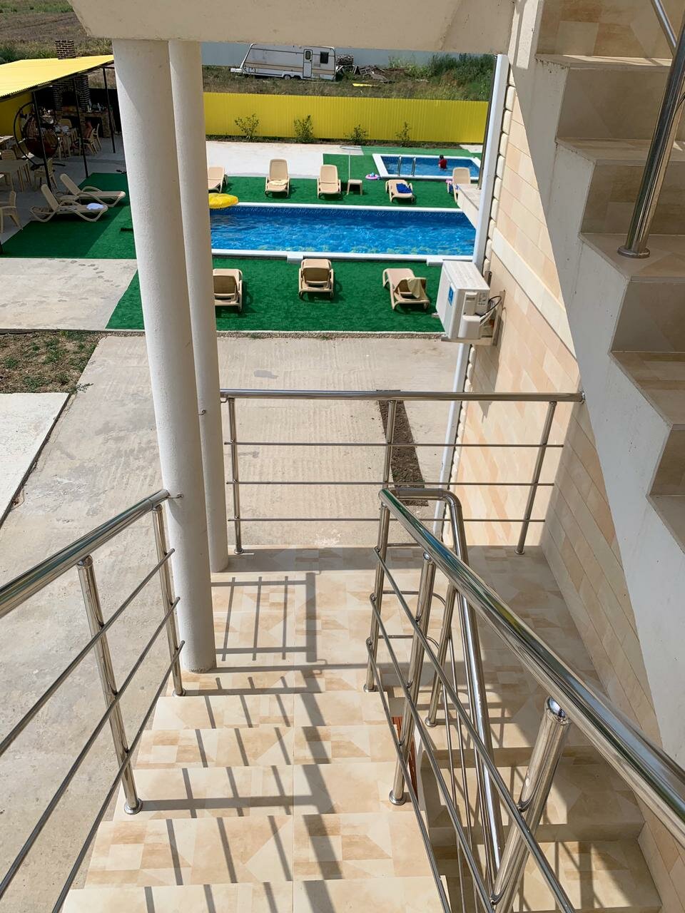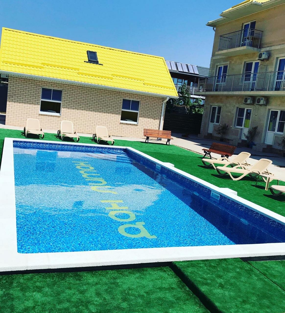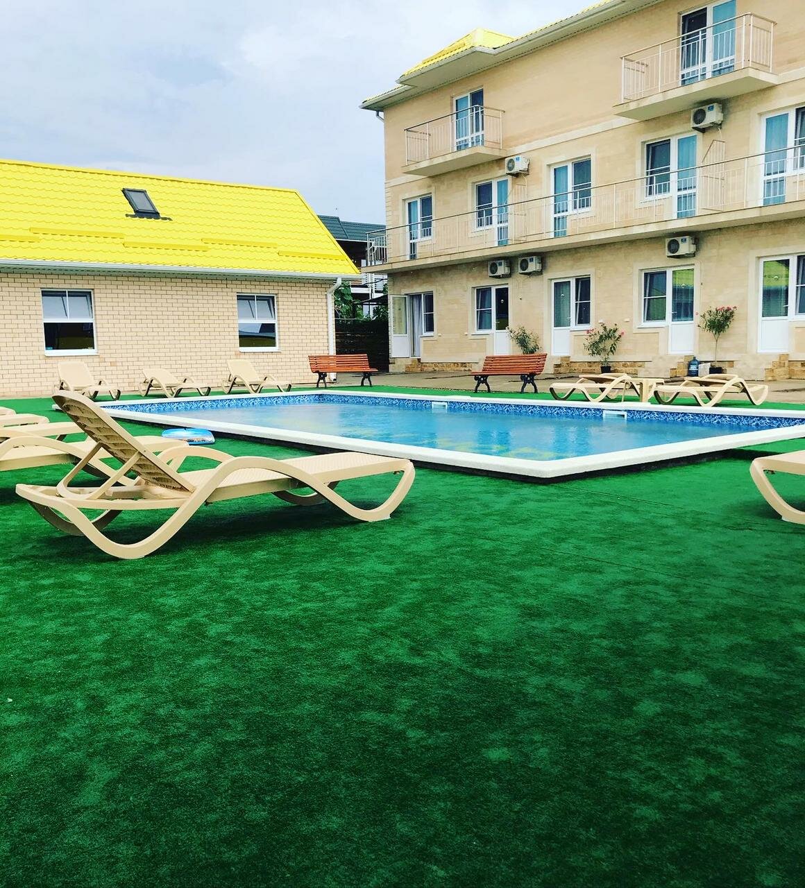Отличное место. Чисто, уютно. В номерах очень удобные матрацы. Чистое белье. Все необходимое в номер. Парковка. Бассейн. Есть мангал- можно пожарить самим шашлыки. Плюс кухня, где можно покушать .