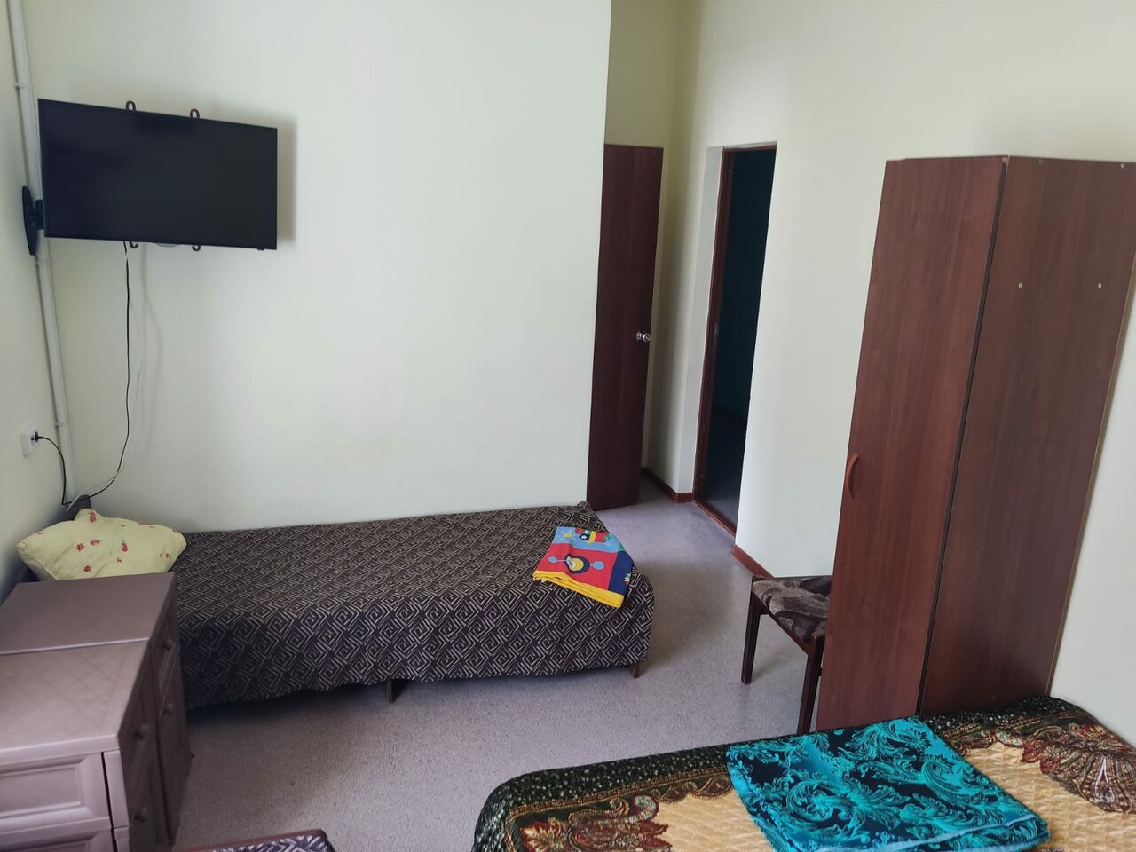 Отдыхала в данной гостинице с семьей и друзьями в июле 2024. Условия ужасные. Хозяин грубый, некомпетентный. Отключал воду в качестве экономии. Пришли с моря, а воду отключил, кое как включил на 5 мин. По мнение хозяина за это время должно было помыться семья из 4х человек. Номера не прибирает, а заставляет это делать гостей. Заехали в номер, полы грязные, невозможно ходить босиком. Море далеко, примерно 30 мин ходьбы. НАСТОЯТЕЛЬНО не рекомендую данную гостиницу, подумайте 100 раз, прежде чем туда заехать!!!!!!!!!!!!!