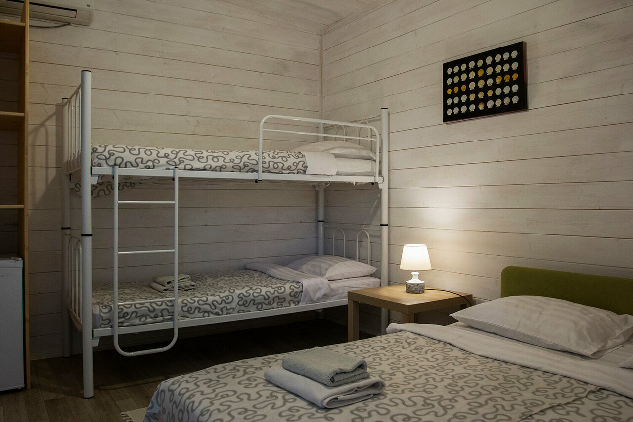 Рядом — собственный песчаный пляж (до моря 669 м), возможен платный трансфер. Ускоренная регистрация заезда/отъезда. Цены от 700 ₽ за ночь.