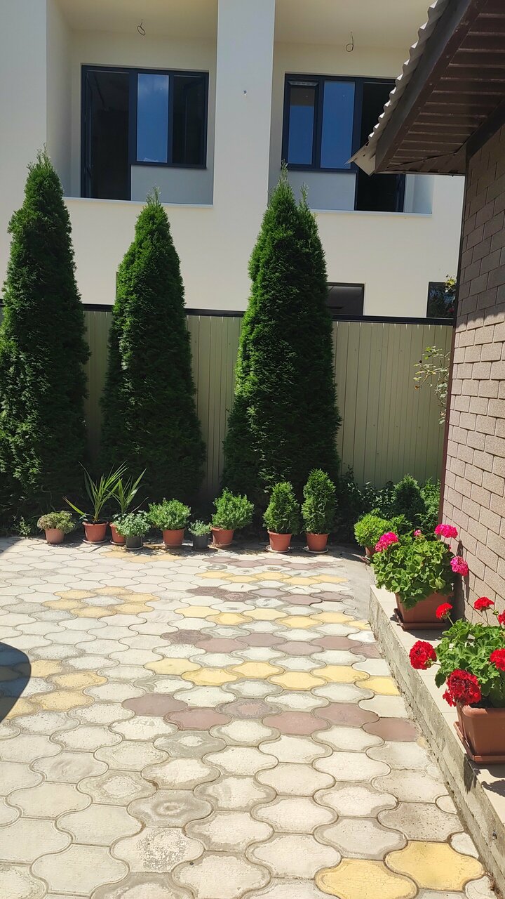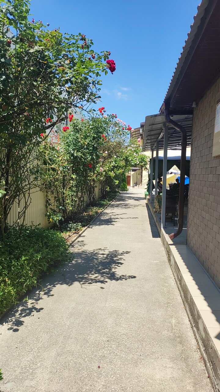 Отличное место для отдыха. Хозяйка Марина просто супер! Во дворе всегда чисто, смена белья через 5 дней. На кухне отдельный кран с питьевой водойБассейн во дворе. Рядом в доме сетевой магазин.