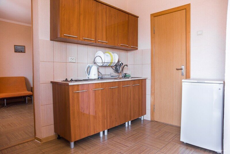 В номере было чисто и уютно. Теплая вода, кондиционер, холодильник – тоже были. Есть общая кухня — для меня это главное, так как готовила самостоятельно себе и детям. Бассейн во дворе и парковка есть для авто. Месторасположение гостевого дома отличное. По развлечениям -аттракционы, пляжи, скверы, кафешки все рядышком. Спасибо!