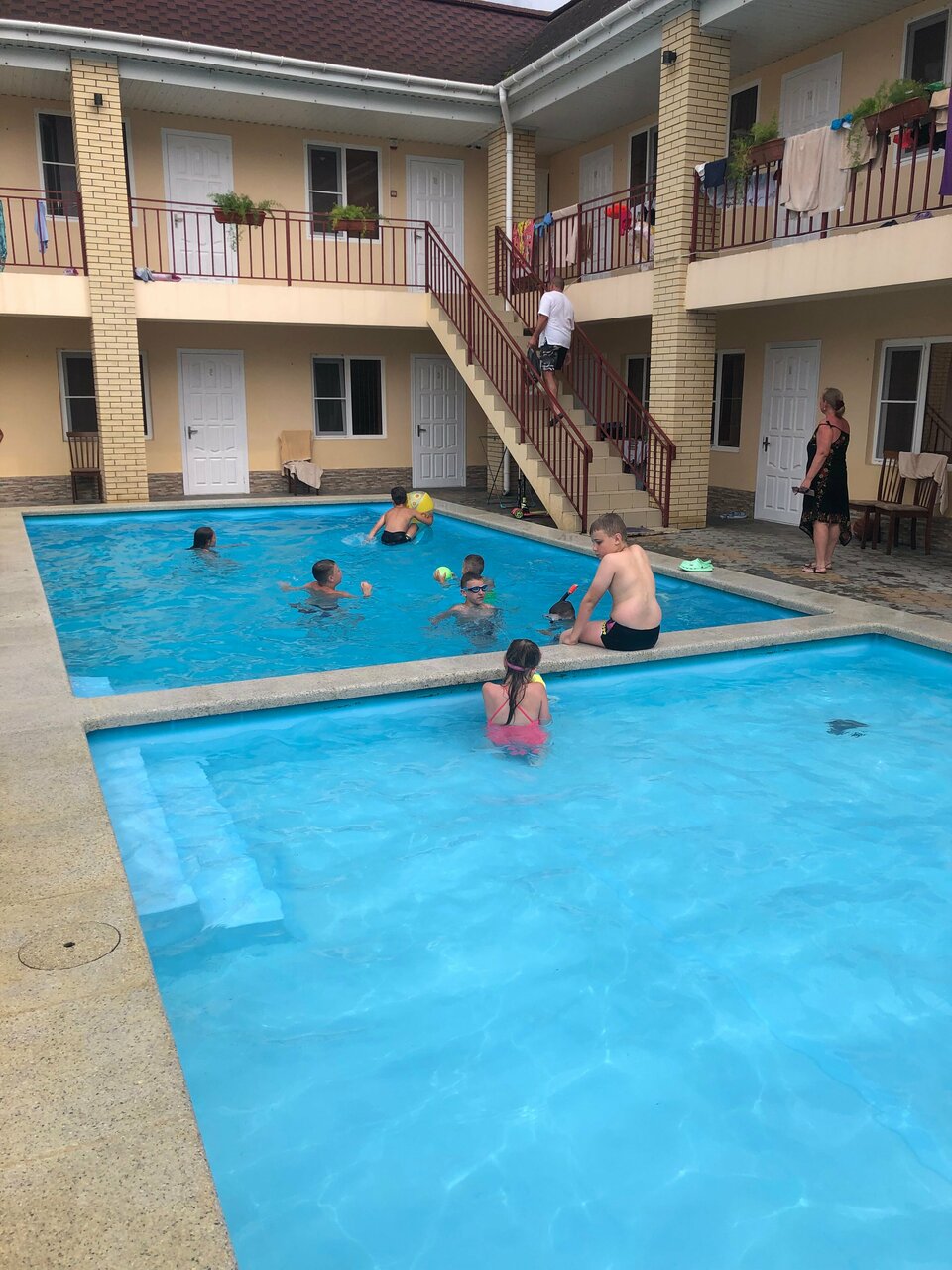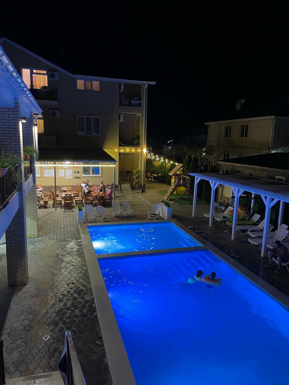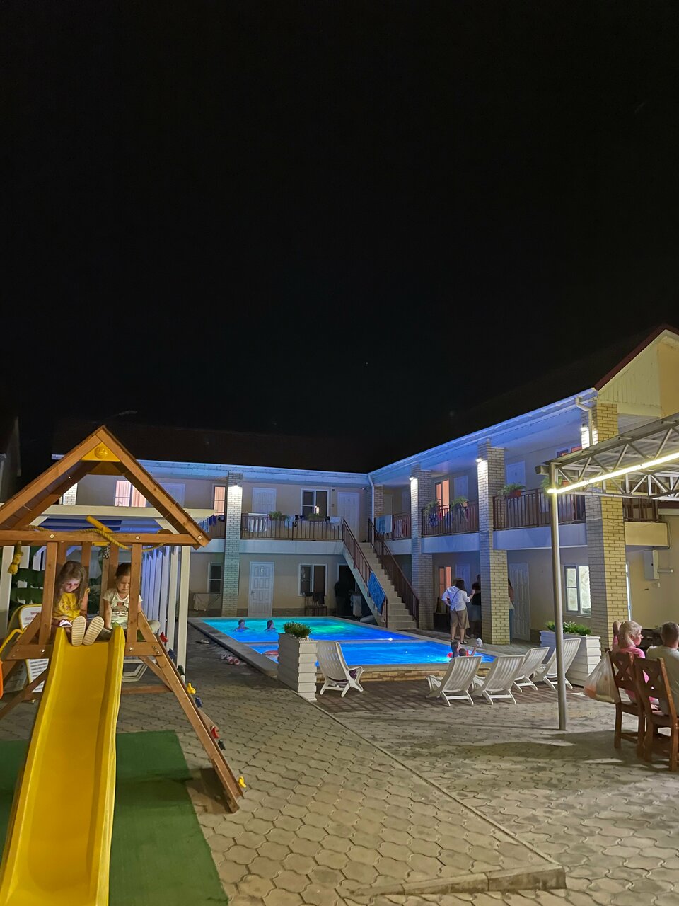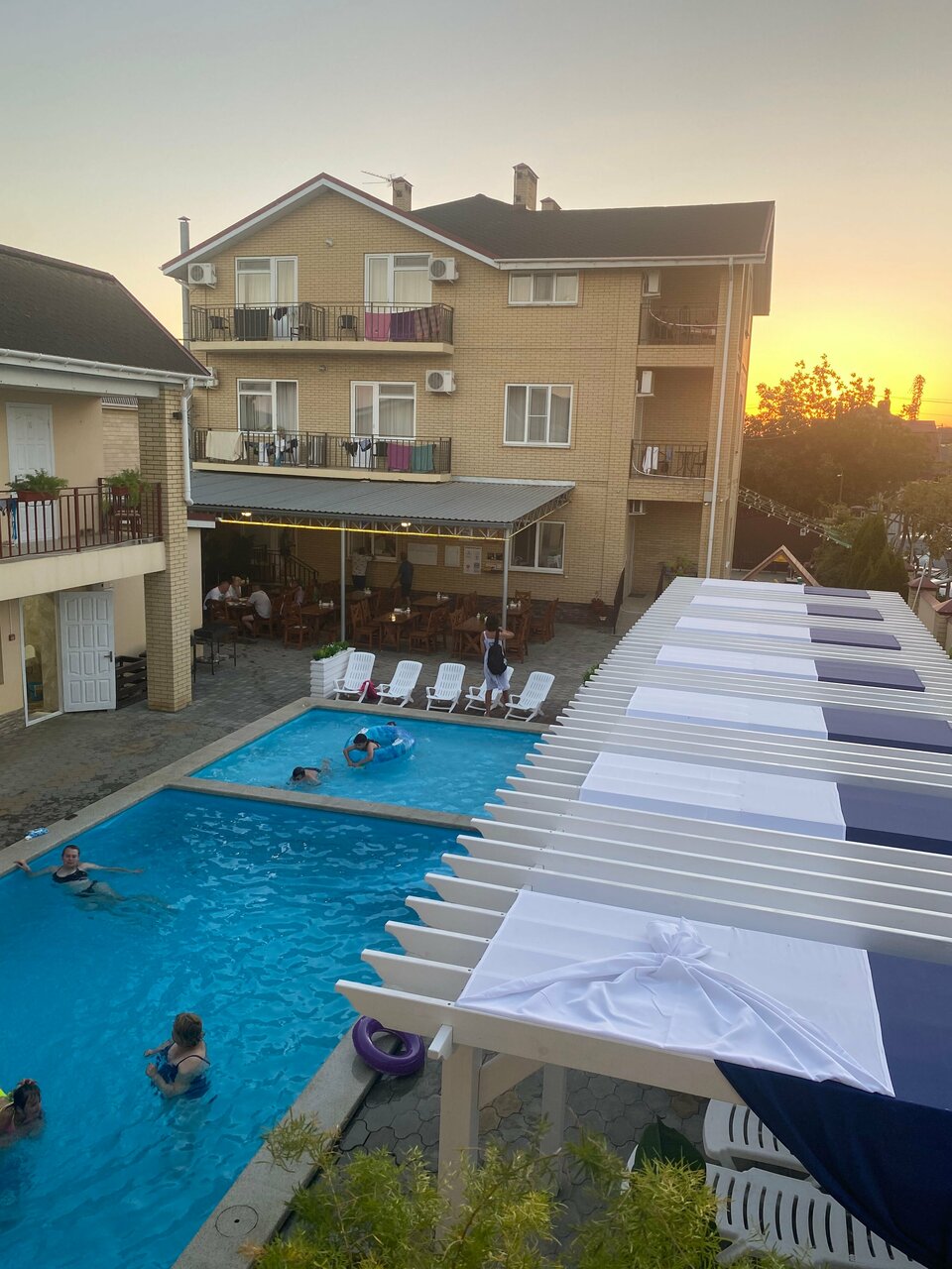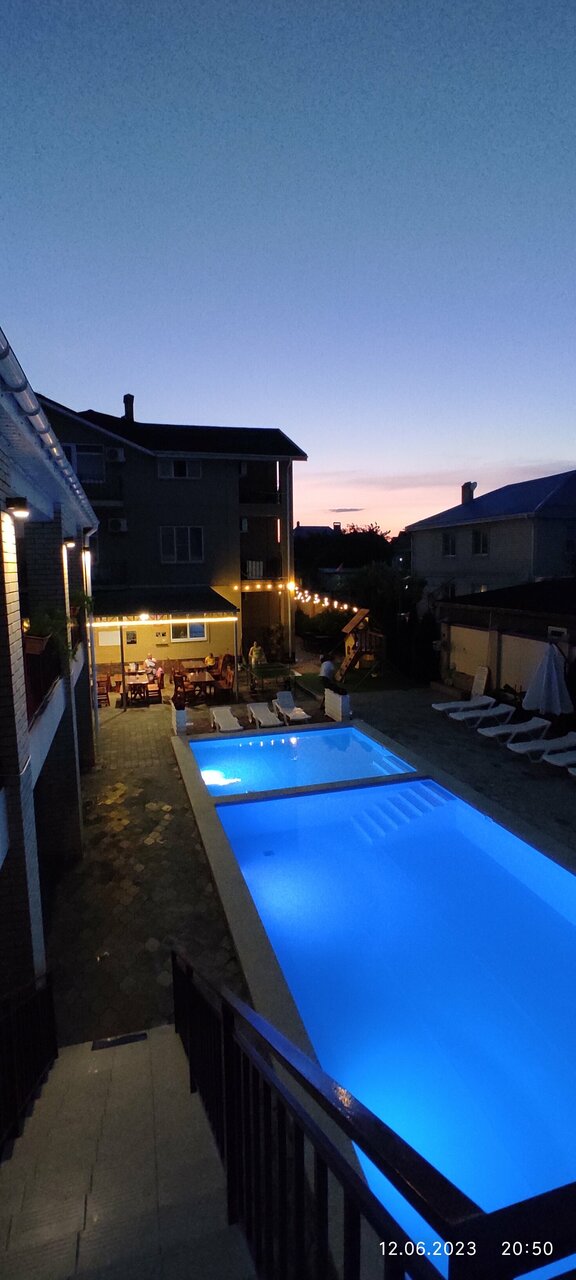 Отдыхала в этом отеле с внуком с 15 по 30 июля 2023 г. Отличный отель. Ухоженная, чистая территория, удачное расположение. В номере есть все необходимое. На территории отеля небольшое кафе, где можно позавтракать, пообедать и поужинать. Готовят вкусно, по домашнему. Очень вкусная запеканка, нежная и воздушная. Бассейн с подогревом, детская площадка, каждую пятницу анимация для деток. До моря примерно 15 минут пешком. Отдельная благодарность хозяину отеля Якову Александровичу. Отзывчивый и гостепретмный человек. Мы приехали рано, нас встретили на вокзале, быстро довезли и сразу-же зпселили. Не пришлось ждать 14:00. Мы остались довольны нашим пребыванием в этом отеле.
