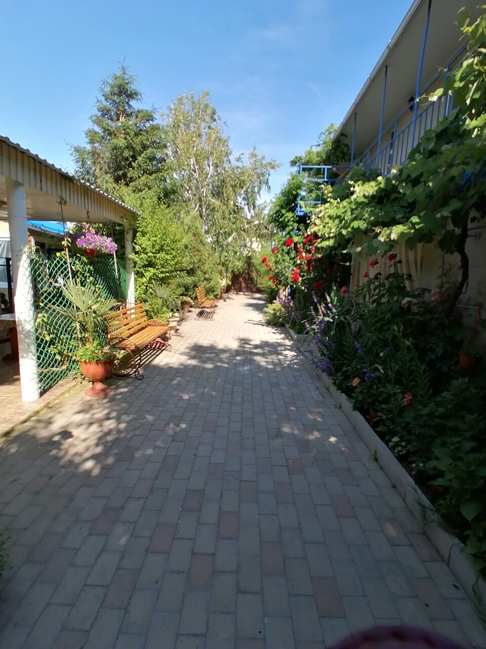 Отдыхаю здесь с 16 до 27 июня 2022 года. Место хорошо для тех, кто любит тихий отдых в семейной обстановке. Полное ощущение дачи. Удобные номера с кондиционером, холодильником и всеми удобствами. В тенистом доре установлены скамейки для отыха, есть детская площадка. Деток без родителей за ворота не выпускают, то есть если вы не видите свое чадо — оно либо на площадке, либо в гостях у соседей. Если вы любите готовить самостоятельно — это место точно для вас. Здесь прекрасно оборудованная кухня с газовыми плитами. Есть мангал. До моря 10-15 минут пешком (в зависимости от скорости передвижения), то есть чуть больше километра, дорога проходит по красивым лиманам, либо ходит маршрутка и забавный паровозик. В общем, мне нравится. Обязательно приеду сюда еще.