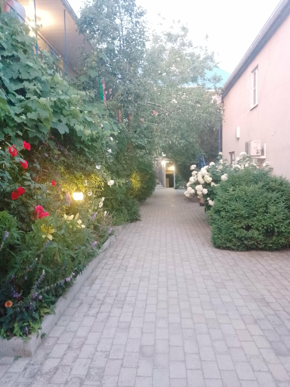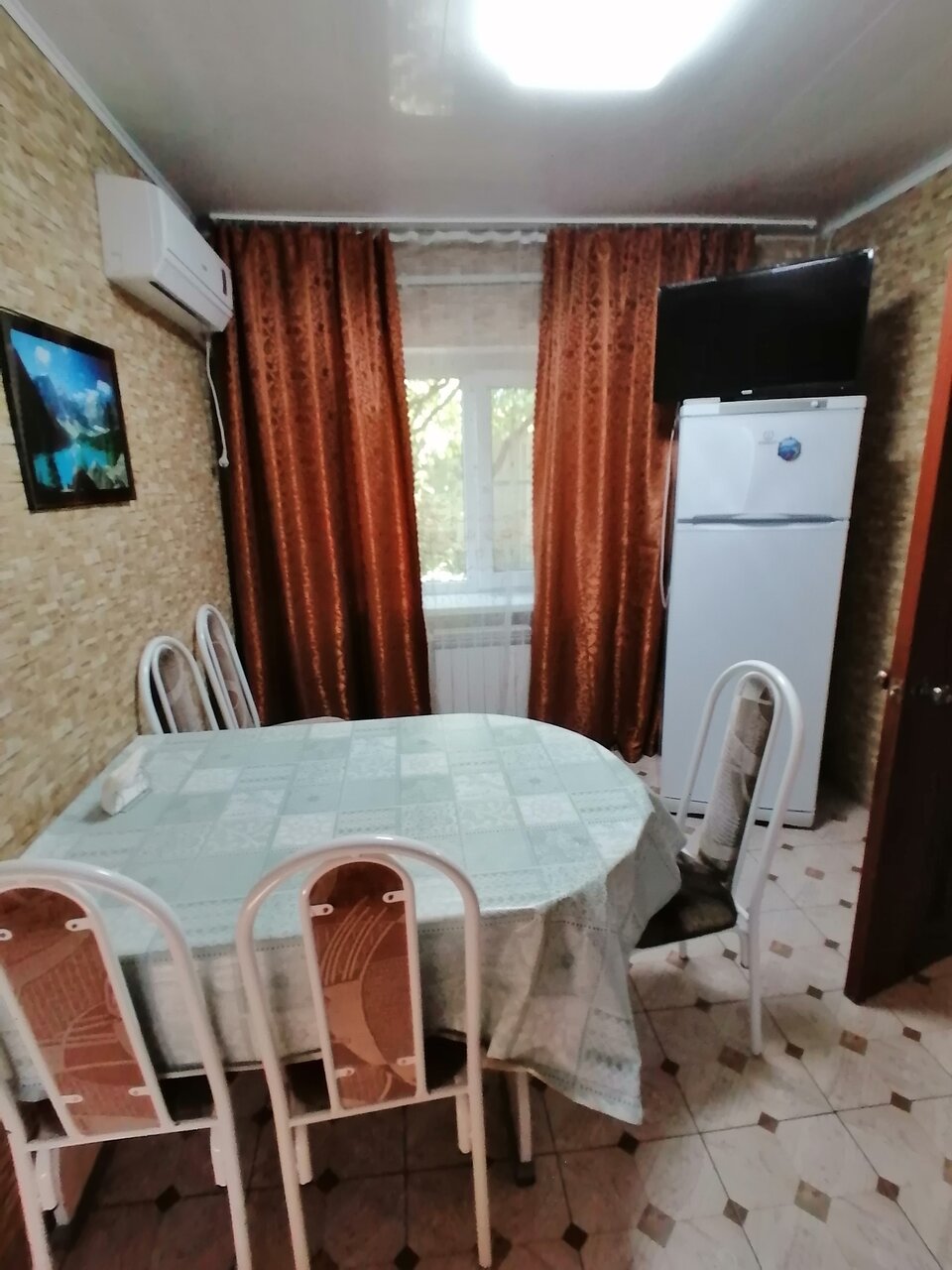 Чистые номера, приветливая хозяйка, большой двор с лавочками, так же есть двор с качелями для детей и взрослых, зона с мангалом, лужайка с травой побегать детям. Номера комфортные, удобные кровати, подушки, кондиционеры работают отлично. Выдают полотенце, хочу заметить это делают не везде. Туалетная бумага тоже присутствует в номерах. Так же есть мыло можно мыть смело руки, посуда в номерах как указано, кружки,ложки, вилки, тарелки, холодильник всё в номере. Кухня только отдельная (общая). На общей кухне чисто, имеется посуда, 2 плиты, 2 раковины, столы за которыми можно кушать, микроволновая печь. На территории растут деревья по этому заходя за ворота вы попадаете в прохладу. Есть место для того чтобы смело отпускать детей побегать, не во всех дворах это можно сделать. Вечерами для детей включают просмотр полнометражных мультфильмов на больничном экране.
