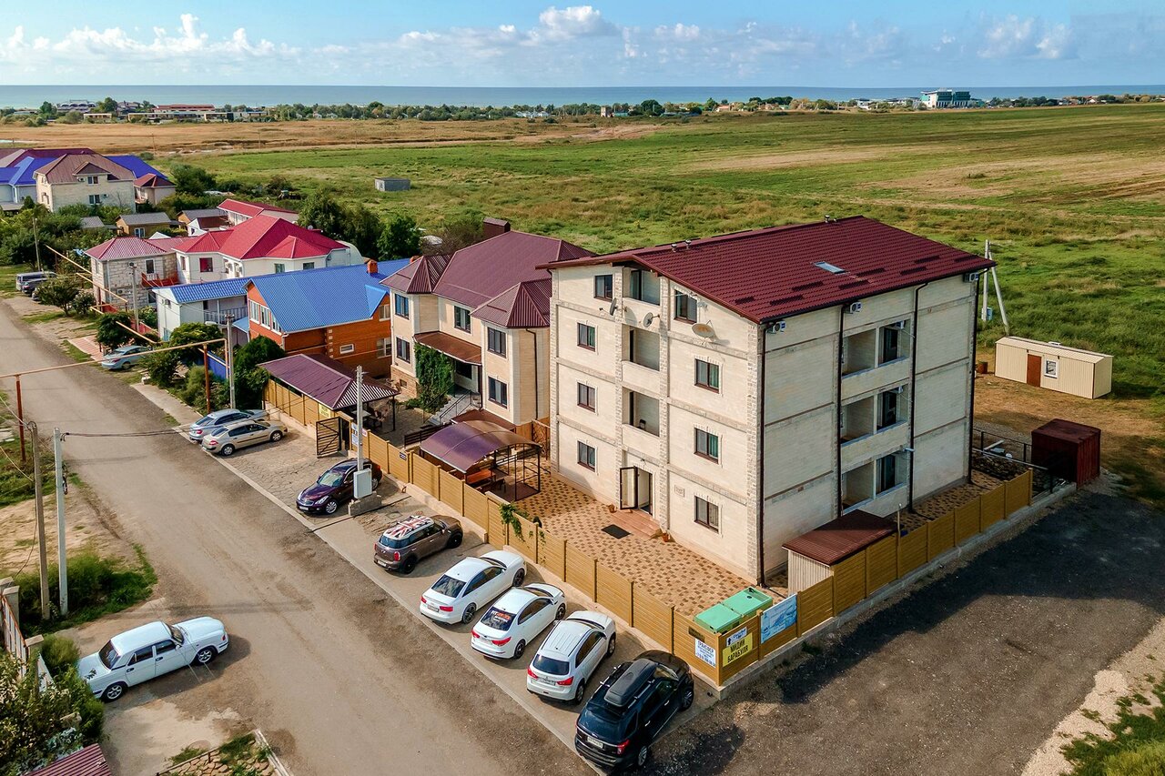 соотношение цена / качество. Территории практически нет, есть одна большая беседка и мангал. Смежно расположен еще один корпус, в цоколе есть столовая. Ничего особенного — просто поесть, при этом достаточно высокий ценник. в бассейн не ходили. До море пешком далеко, ездили на такси