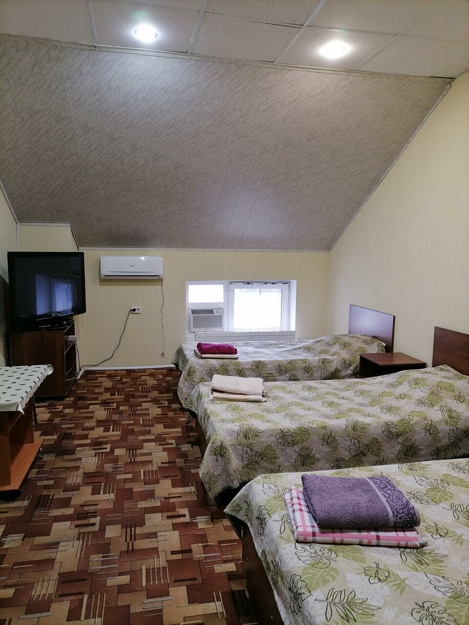 Уютно, комфортно и персонал вежливый. В комнате есть телевизор , чайник ,кондиционер . Внизу кухня ,можно по готовить что твоей душе угодно))) ( на скорую руку) , Рядом в 5 минутах ходьбы магазины, аптека. Кстати в одном из магазинов вкусные пирожки )) и после 20.00 скидка на готовую продукцию. Так что мы переночевали и нам все понравилось.