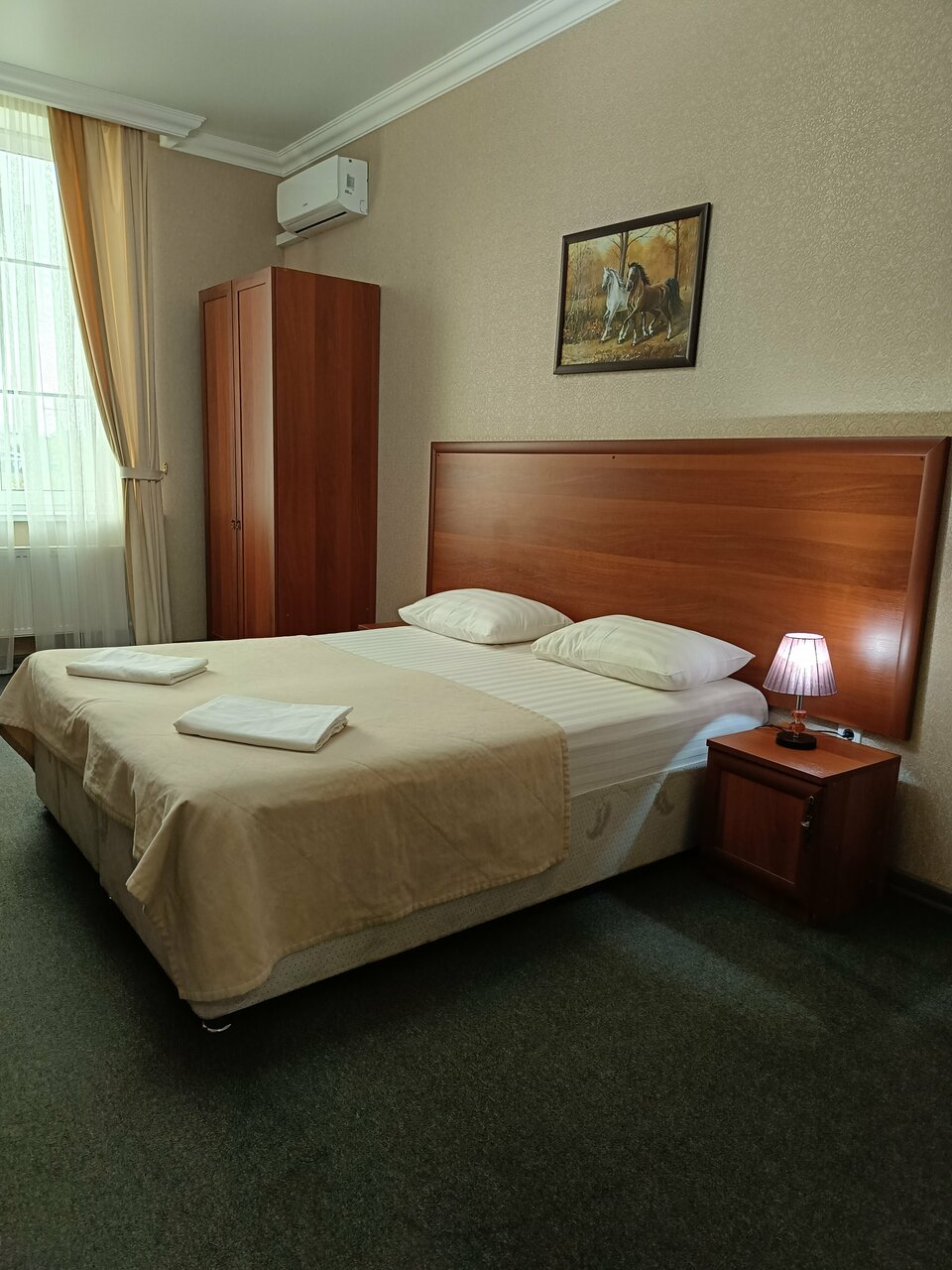 Первое, что бросается в глаза — чистота. Есть недостатки в виде небольших поломок, wifi только в коридоре, чайников в наших номерах не было. Если открыть окна — круглосуточный шум с трассы. Но можно не открывать, в номерах кондиционеры. Шумоизоляция хорошая. В соседней пристройке ресторан. Такой же чистый и с большим выбором блюд. В качестве мотеля — чудесный вариант.