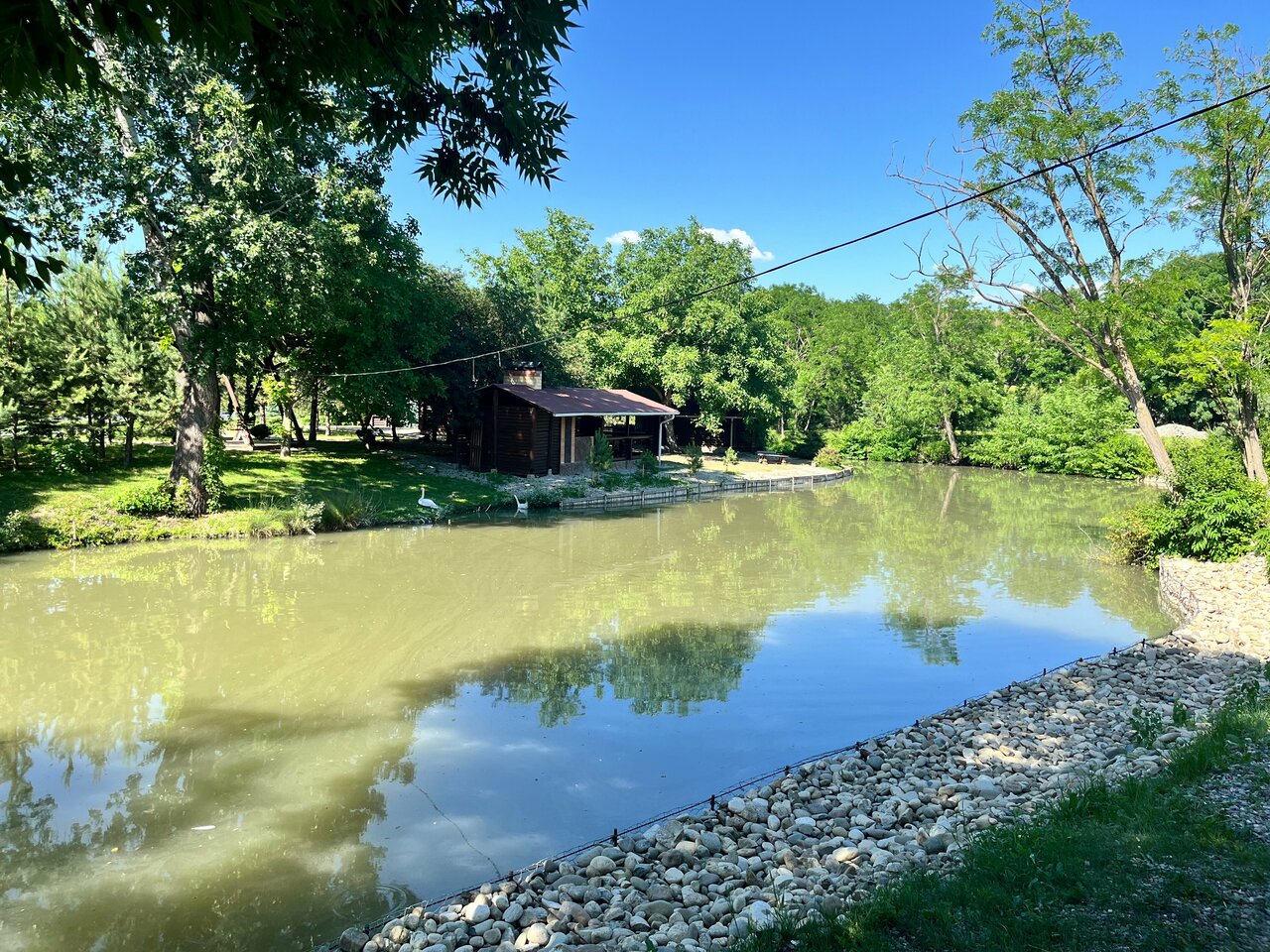 Хорошее место для отдыха семьей,компанией, с детьми тоже хорошо. Мини зоопарк — птицы,олени, лебеди. Чистота — посуда, бельё,полотенца,комнаты,территория — всё идеально. В каждом домике баня,кухня,комнаты оснащенные всем необходимым. При каждом домике терраса и мангальная зона. Общий подогреваемый бассейн. Территория закрыта, посторонних нет. Персонал хорошо обучен. Никого не видно,но всегда рядом. Идеально. Спасибо