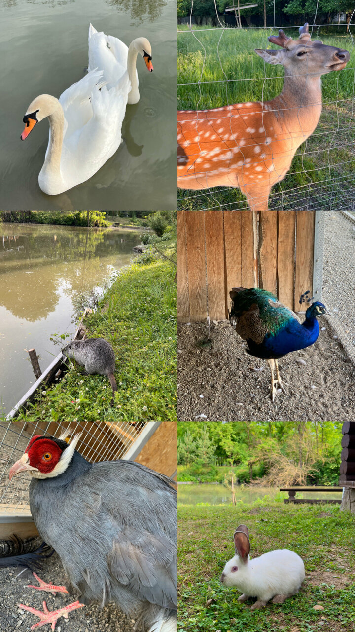- Мини-зоопарк (олени, павлины, лебеди).