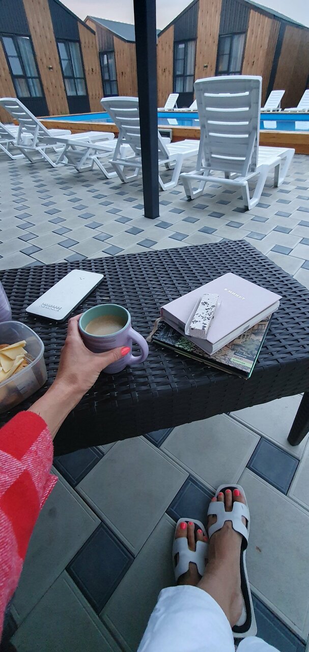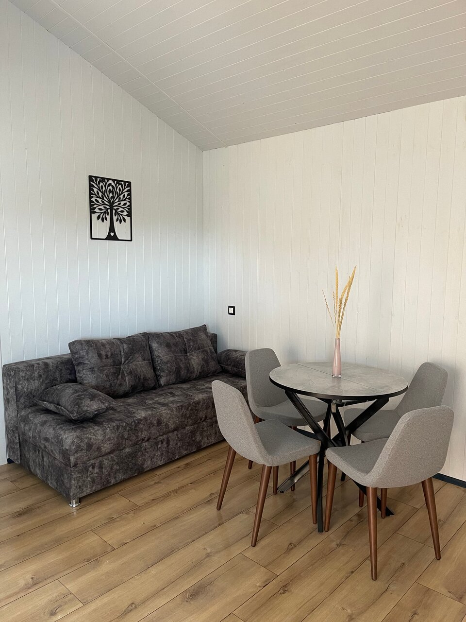 Потрясающий оазис комфорта в дикой природе. Всё чистое, классное, удобное, современное, море рядом. Была бы дорога -асфальт -до домиков и подогрев у бассейна, совсем цены бы не было. Хотя по таким дорожкам кайфово гулять и бегать по утрам. В домике пахнет деревом, много мест для хранения одежды, получилось все вещи убрать, чтоб не было хаоса. Матрасы удобные. Белье белое, чистое, сантехника чистая. Есть стиральные машинки. Посуда вся в едином стиле, можно красиво сервировать стол без проблем.