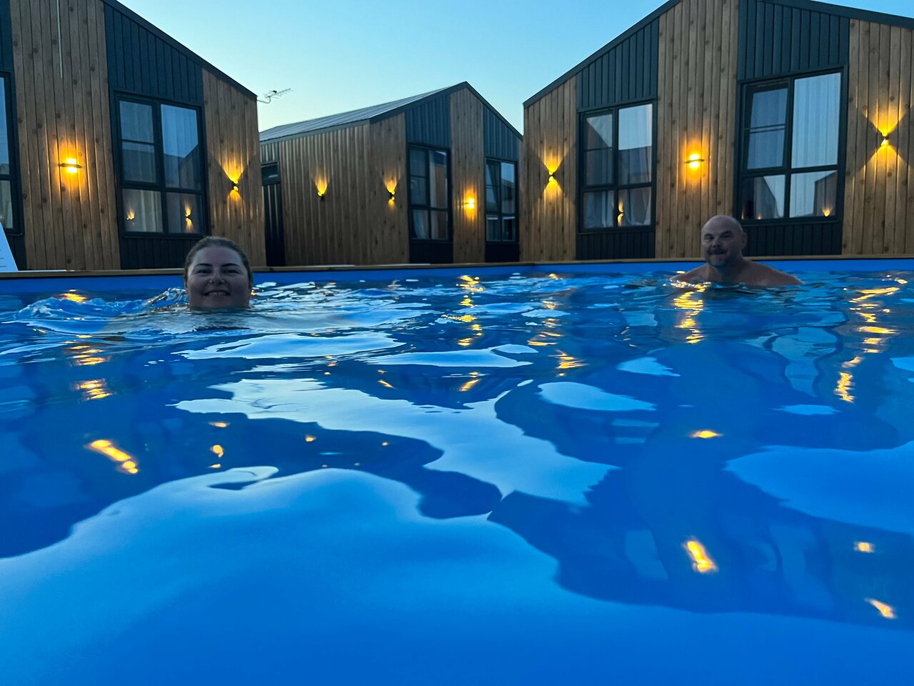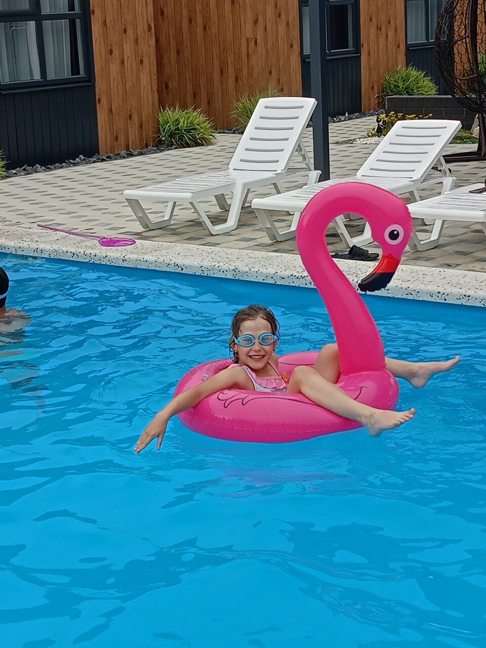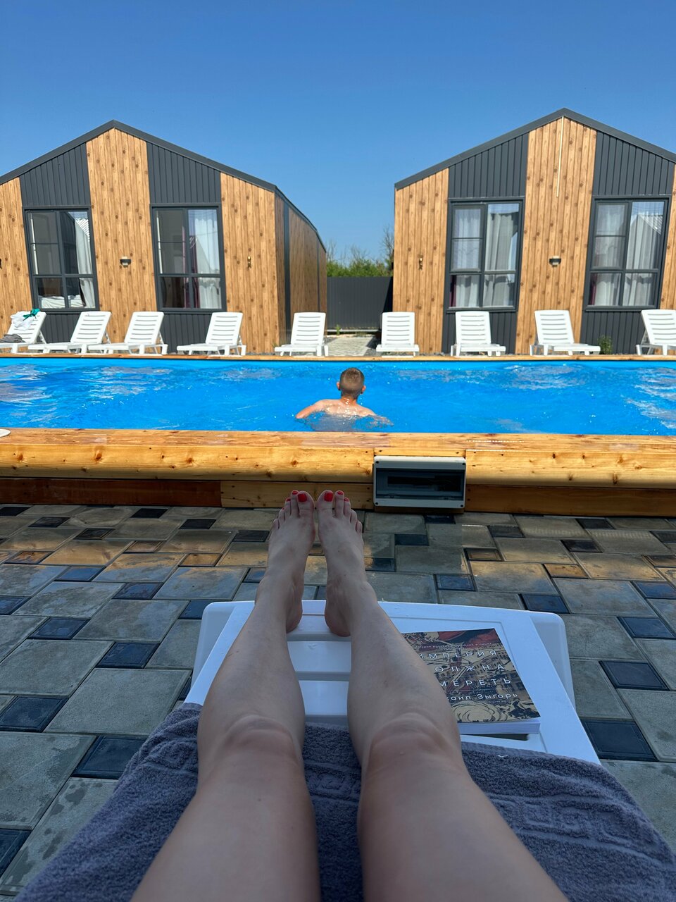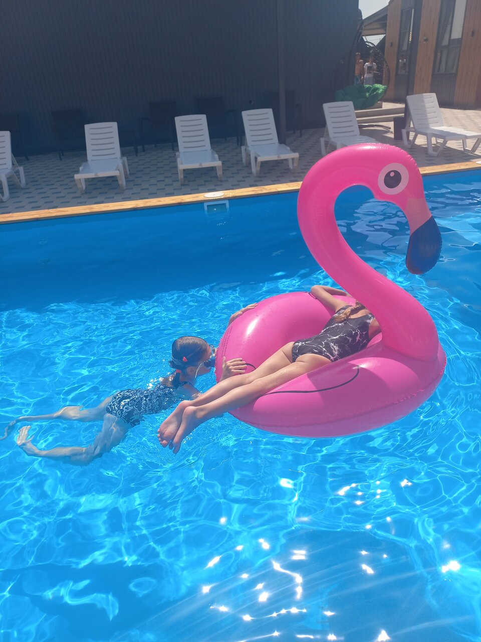 Всё круто, чисто. Новые домики с собственной террасой, просторными комнатами, кухней и удобствами. Территория супер, бассейн прекрасный, чистый, комфортный, с зоной для малышей. Много детских зон: батуты, детская площадка, кресла-качалки. Большая мангальная зона. Хозяева, Станислав и Ольга, отзывчивые и приятные люди. Встретили, разместили, рассказали, показали и всегда были на связи при необходимости. Мы семьёй очень довольны отдыхом в этом прекрасном месте. Рекомендую всем!!! Не пожалеете
