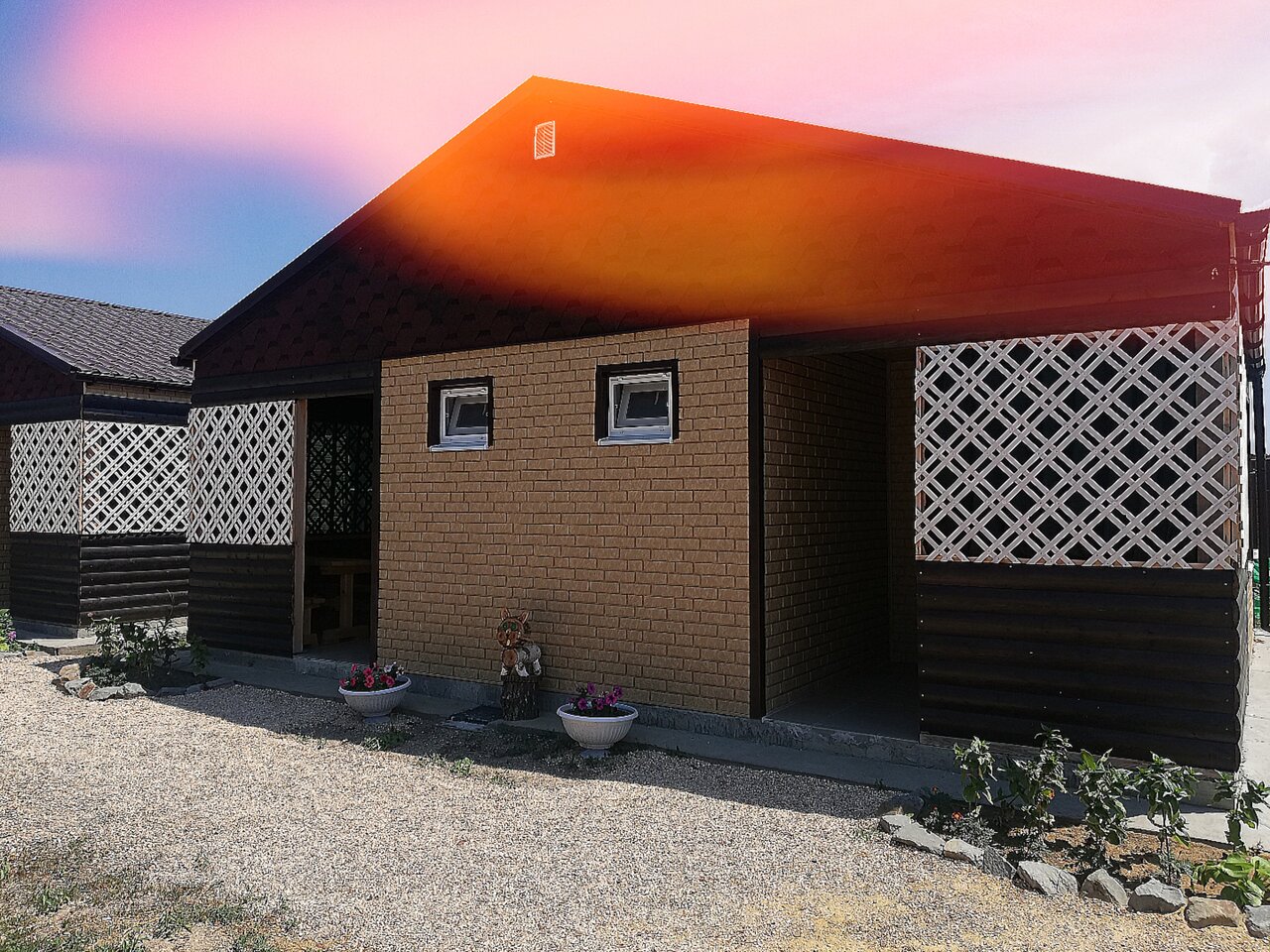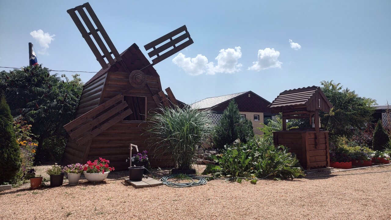 Хороший домик, у нас был 7-ми местный. Есть ещё 3-х и 4-х местные. Ухоженная территория, есть детская площадка, гамаки, беседки возле домиков. Приветливые хозяева