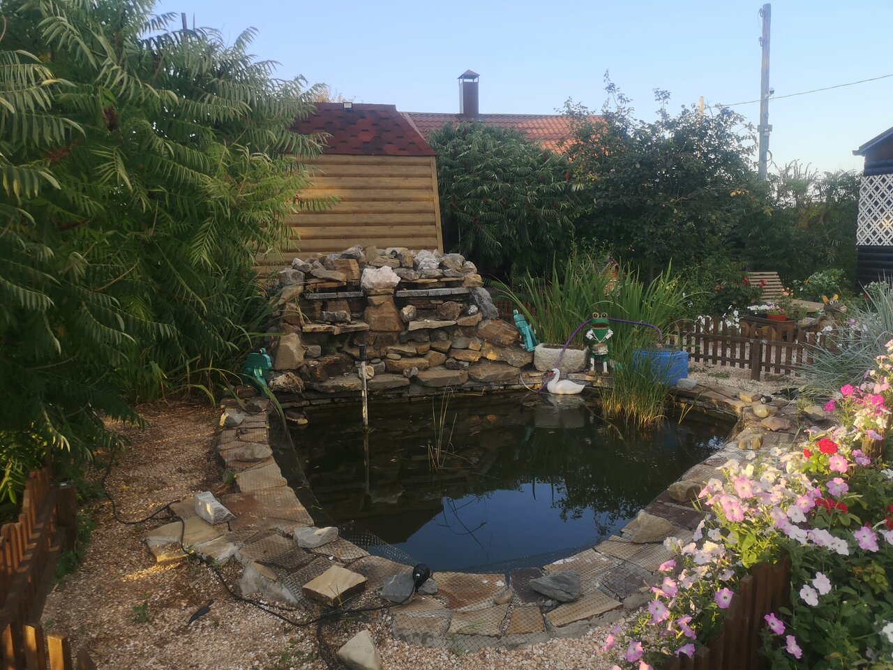 На территории чисто, есть гамаки, шезлонги, качели. Для детей горки. Благодарим хозяев за радушный приём.