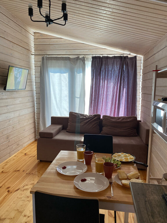 Однозначно буду рекомендовать друзьям. Так получилось что была возможность забронировать домик за несколько дней до начала отпуска, а не сильно заранее, списались с владельцем в WhatsApp, все уточнили, внесли предоплату. Нам достался 4 домик и он полностью соответствует фото на сайте. По приезду нас встретила вежливая и приятная администратор, все показала рассказала. Были семьёй 2 взрослых и 2 ребёнка. Территория большая, ухоженная, есть детская площадка, батут, качели. Свой бассейн под открытым небом, так что можно отдохнуть на море не доходя на море. Нам попались хорошие, не шумные соседи с детками. Удобства типа с/у, душ, газовая плита, холодильник, свч, кондиционер значительно облегчили пребывани