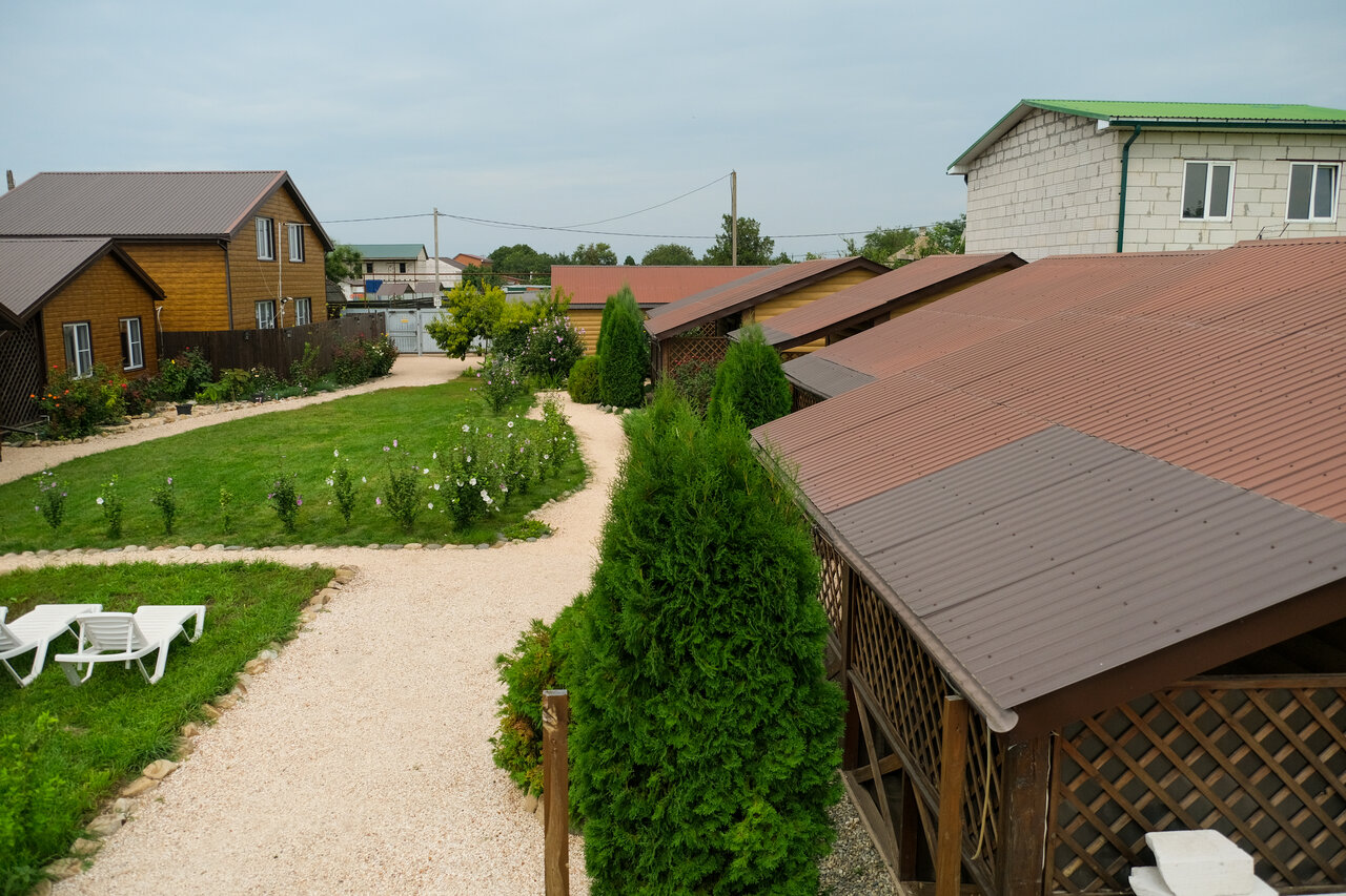 Рядом с морем, есть платный трансфер от/до вокзалов, услуги няни и уборка. В стоимость проживания (2500–5000 ₽/ночь) может входить завтрак по меню. На территории — площадка для пикника, шезлонги и зонтики.