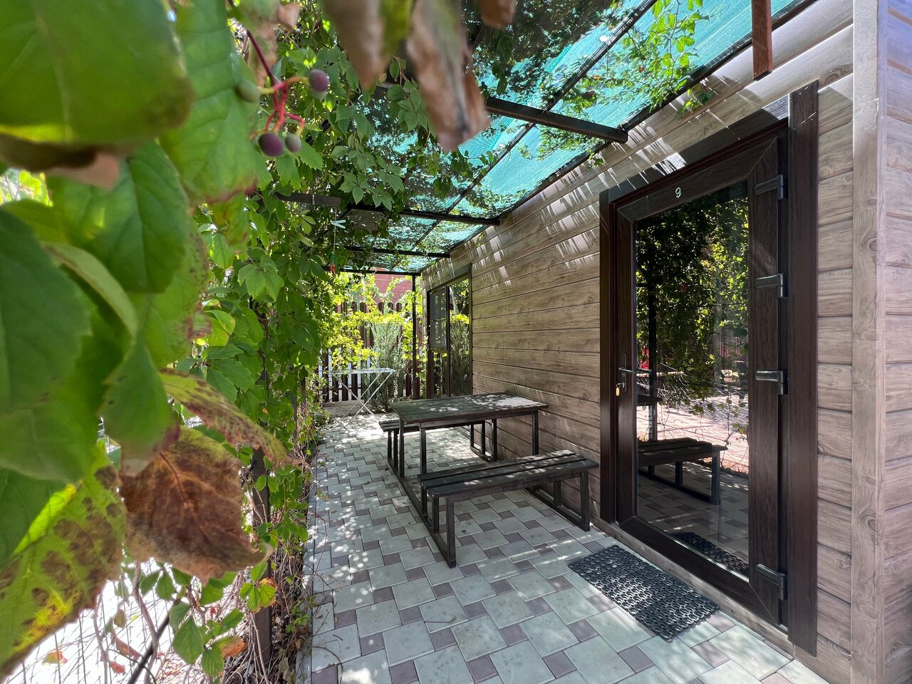- Большая кухня для самостоятельного приготовления еды.; Чистый и ухоженный пляж без толп.; Чистые и уютные номера со всеми удобствами (мини-кухня, холодильник, TV, сплит-система).; Виноградные насаждения, создающие уют.; Наличие столовой, бара, мангальной зоны.