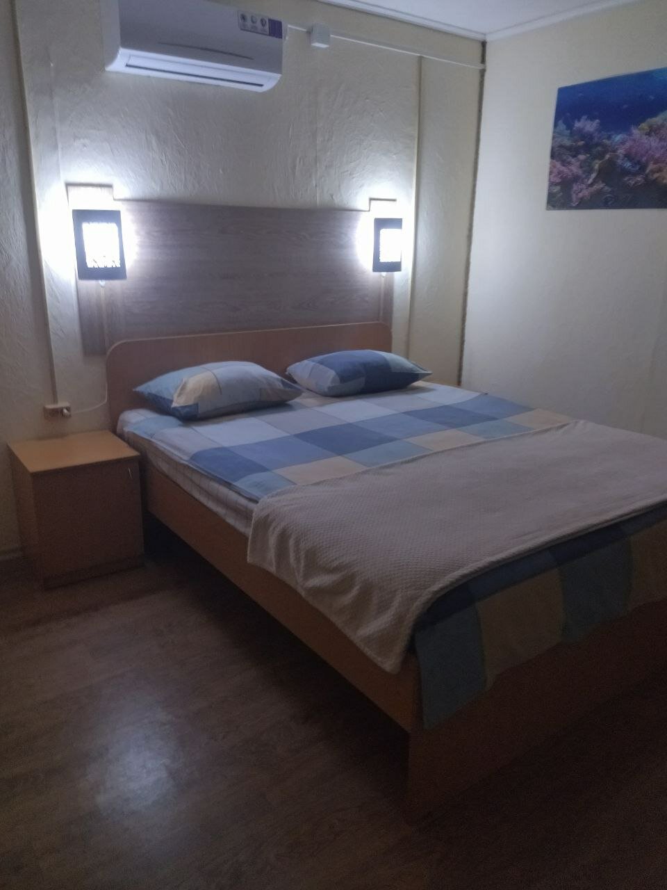 Номер 'Полулюкс'- одна двуспальная кровать Площадь: 32 кв.м.Вместимость: до 2-4 чел. Особенности: Терраса, Оснащение:Телевизор,WiFi, Шкаф для одежды,Чайные принадлежности, Минихолодильник, Кондиционер, Ванная комната: Душевая кабина,Набор косм...