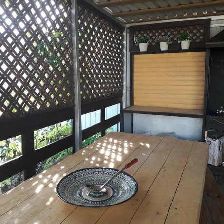 Расположение хорошее, тихо, чисто, все удобства в наличии. Домики индивидуальные, все есть: санузел, горячая вода, кухня, терраса. Хозяева не навязчивые. Стоянка для машины во дворе.