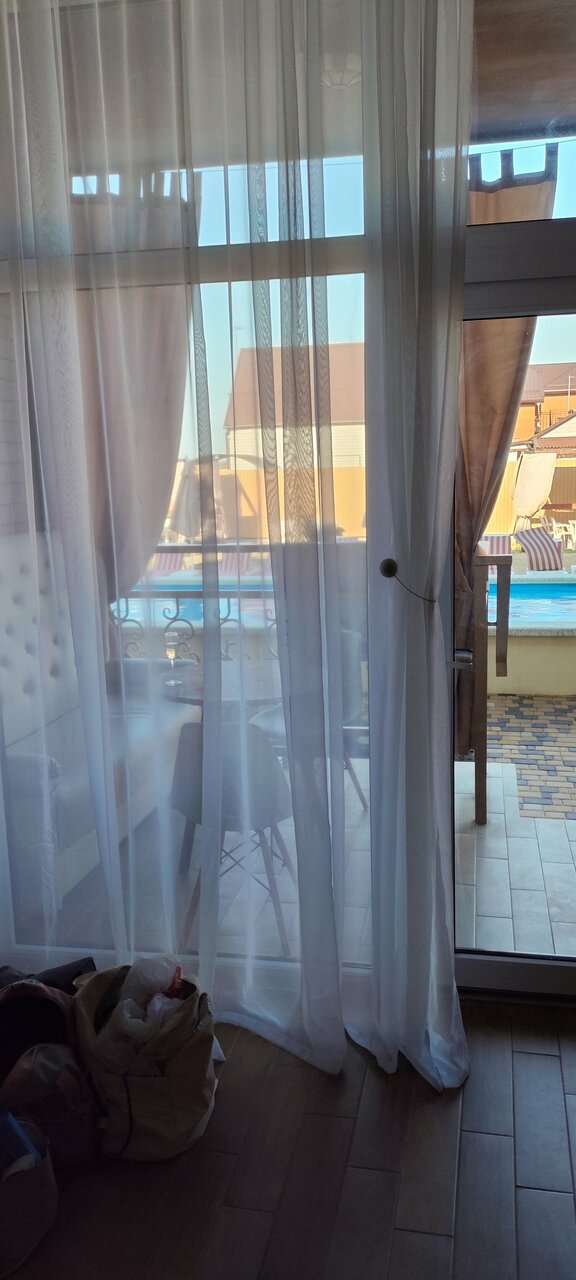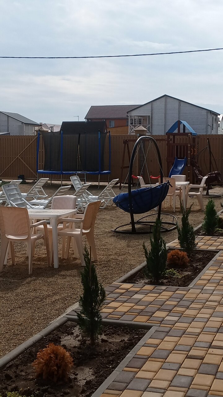 Гостевой дом очень хороший,всё понравилось и вернулись бы туда ещё раз. Каждый день убираются в номерах,через 3 дня поменяли полотенца на чистые.Ночью убираются на территории. Мебель вся новая,все чистенько. На втором этаже питьевая вода включена.На территории имеется бассейн, батут и игровой комплекс для детишек.Единственное пожелание поставить на втором этаже в коридоре микроволновую печь,т.к каждый раз спускаться и подниматься лениво.А так всё хорошо,спасибо Ирине и Артёму!!!Рекомендую!!!