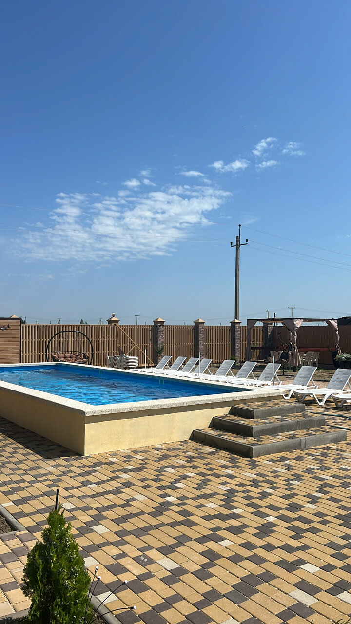 Отличный гостевой дом, современный, в нем продумано все до мелочей. Кухня со всем необходимым. Мангальная зона. Бассейн очень чистый. Уборка номера каждый день, смена белья. До моря рукой подать. Тишина, закрытая территория. Огромное спасибо хозяевам