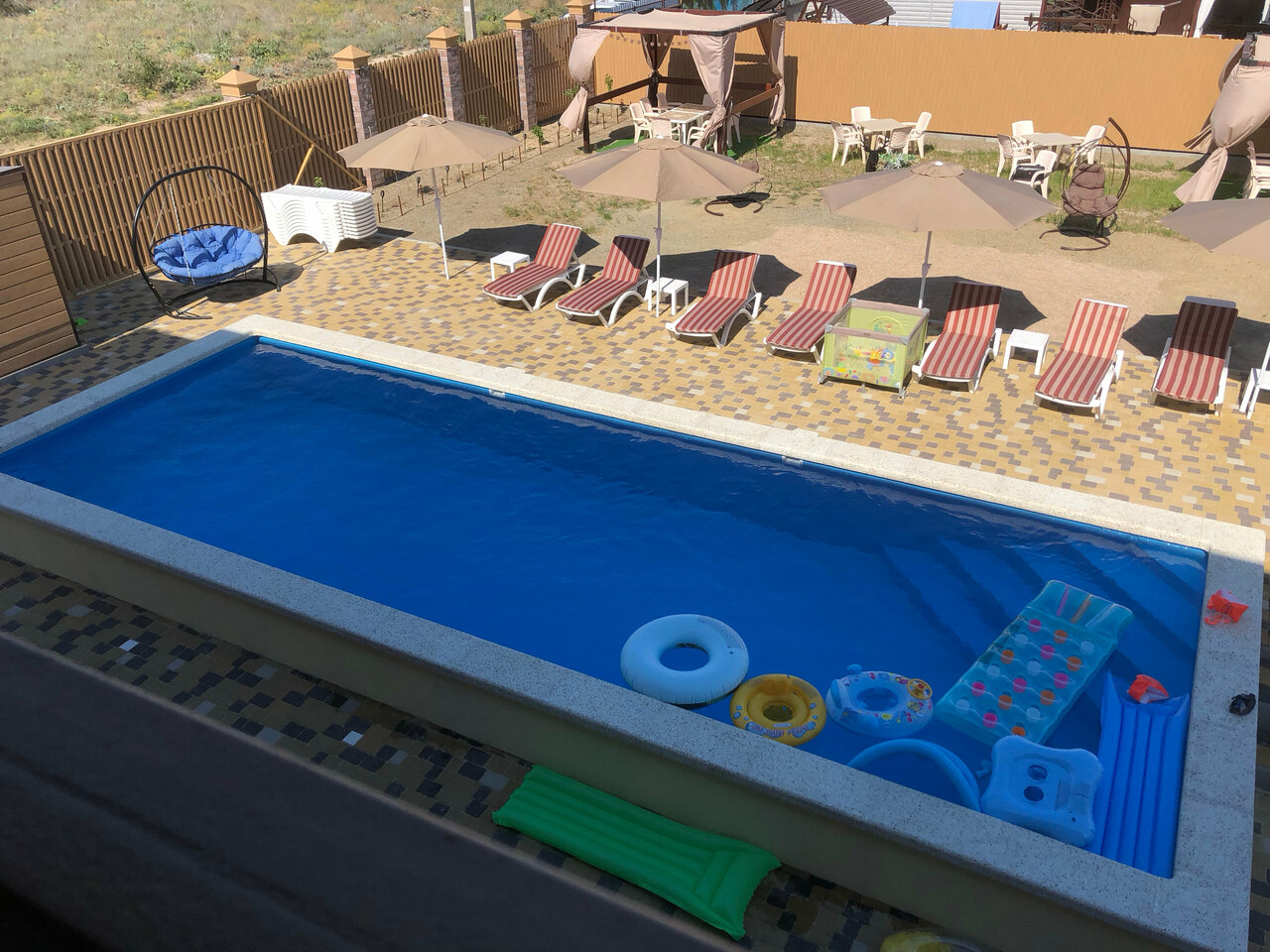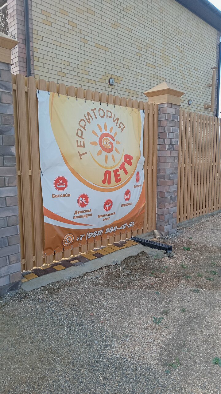 ‘Территория лета’ идеальное место для семейного отдыха! Просто рай на земле! Все продумано до мелочей и сделано с огромным вкусом. Номера чистые, комфортные, оформлены с дизайнерским подходом. Ежедневная уборка. В комнатах холодильник, телевизор, сплит система, посуда, чайник. Постельное и полотенца кристально чистые. В каждом номере уютный балкон(веранда) с обеденной зоной. Очень ухоженная территория, потрясающий большой, глубокий бассейн,с подсветкой в вечернее время(который каждый день убирают). Шезлонги и зонтики от солнца, детская площадка, батут, беседки для ‘посиделок’ в большой компании,подвесные кресла. Отдельная мангальная зона, общая кухня со всем необходимым, кулер с водой. Море в шаговой доступности.Милое уютное место и теплое отношение к каждому гостю. Огромное спасибо Артему и Ирине за такой потрясающий отдых. Остались в полном восторге! Лучшее место в Должанской!