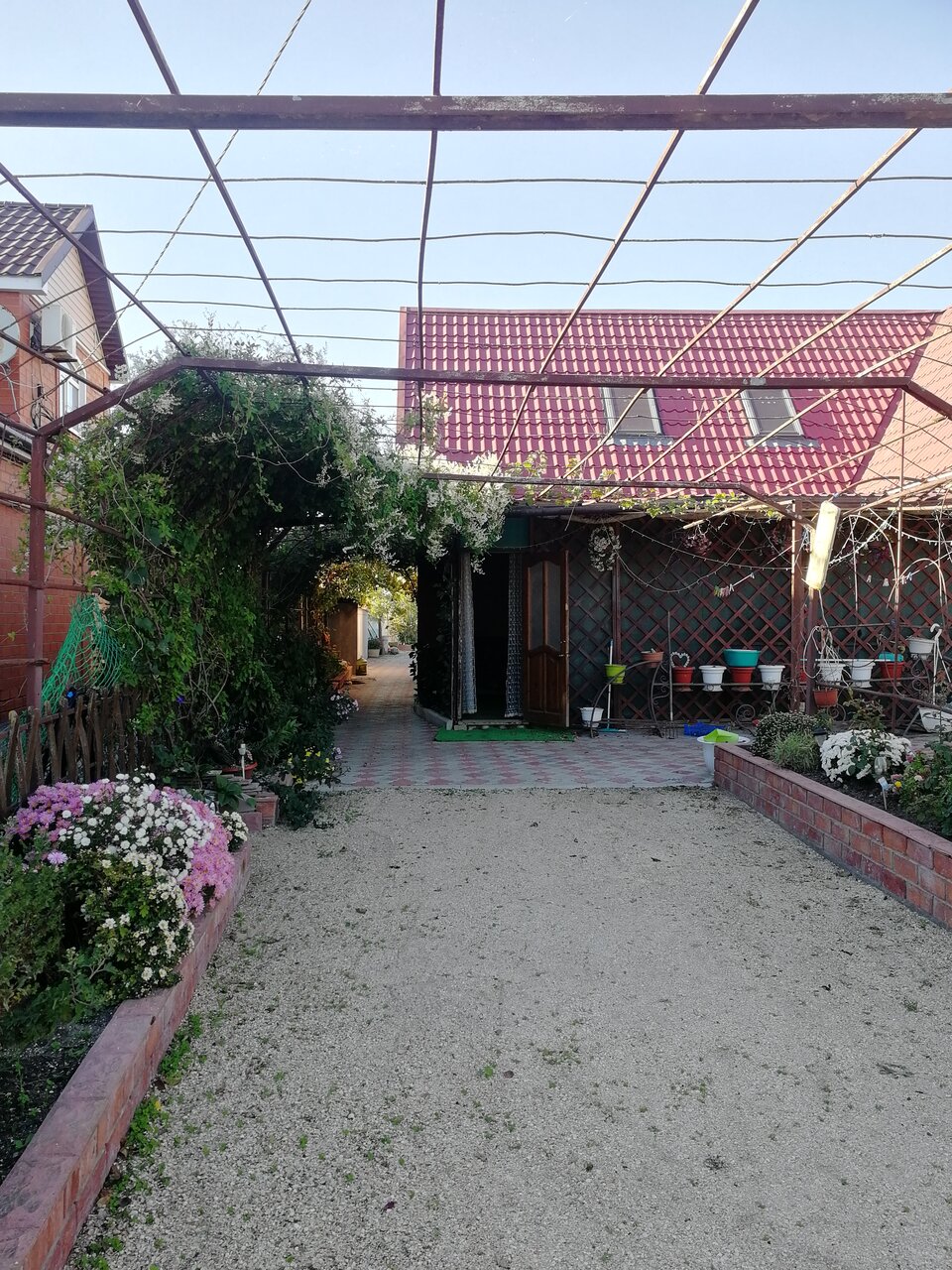 Отдыхали в этом гостевом доме первый раз и решили больше никогда не останавливаться. Номер ‘ удобный’ две спальни, в одной есть сплит, телевизор старше моей бабушки, две кровати, комод и тумба под телевизор, но спать ночью совершенно не возможно по стенам и по постели бегают какие-то чёрные жуки похожие на тараканов и в туалетной комнате тоже. Во второй спальне кровать и плательный шкаф, духота не описать… Кухня вообще треш газовая плита как будто со свалки вся в паутине, а посуда жирная, губка для мытья посуды не менялась наверное с начала сезона и холодильник стоит качается, но хоть морозит. Территория тоже хотелось бы желать лучшего совсем не ухоженный двор, имеется бассейн который работал всего два дня из пяти проведённых в этом гостевом доме. Хозяин извинялся на счёт бассейна, но заплатить такие деньги хотелось бы пожить комфортнее.