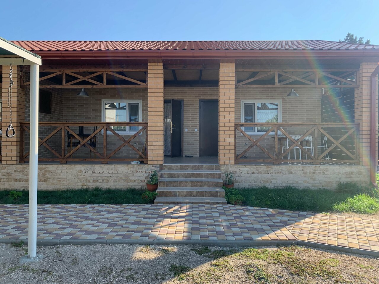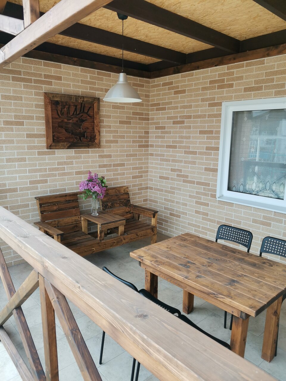 Очень уютный двор, номера новые, есть все необходимое для комфортного отдыха, удобное расположение, недалеко и от моря и от залива, обязательно приедем ещё