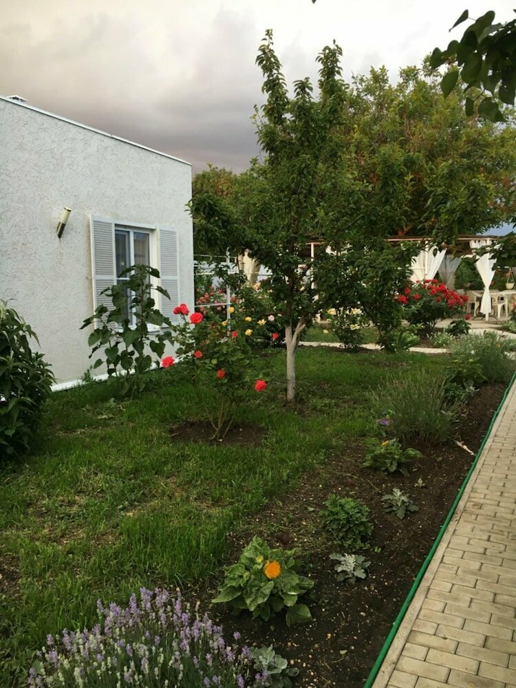 Замечательное место! Тихое, уютное, номера ухоженные, чистые, имеется все необходимое — посуда, холодильник, газовая плита, микроволновка. Всегда есть горячая вода. Санузел в идеальном порядке. Территория утопает в зелени, цветах. Парковка на территории двора. Очень приветливая и доброжелательная хозяйка, завтраки включены в стоимость номеров, меню разнообразное и очень вкусно все приготовлено.