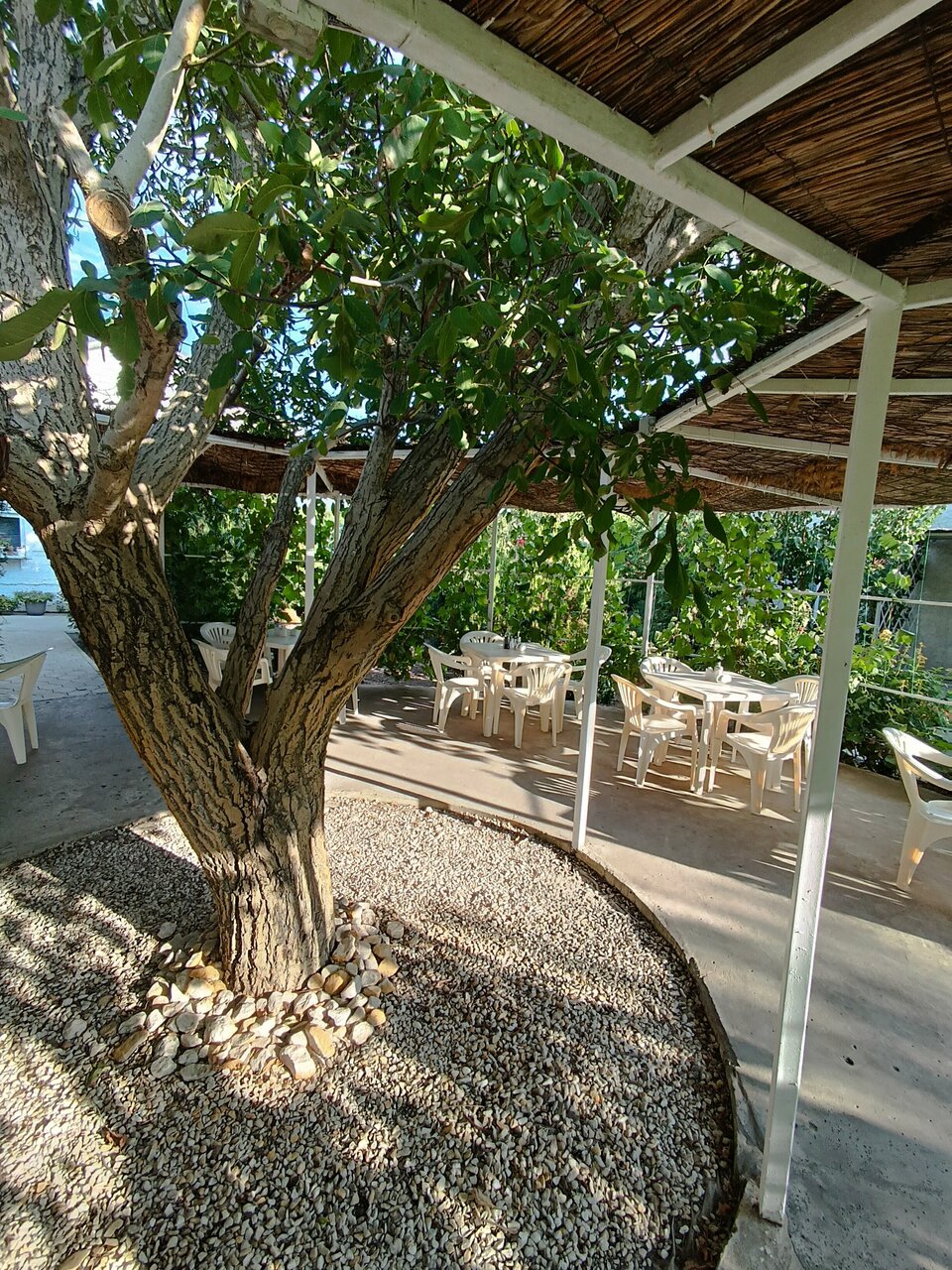 Прекрасное, тихое место, все что нужно для спокойного семейного отдыха. Вкусная кухня, номера оборудованы всем необходимым. Доброжелательные хозяева. Отдыхают в основном семейные пары с детьми. Есть детская площадка. До моря 20 мин очень медленным шагом, мы чаще ездили на машине, 5 мин. Мне понравилось, надеюсь вернуться сюда снова