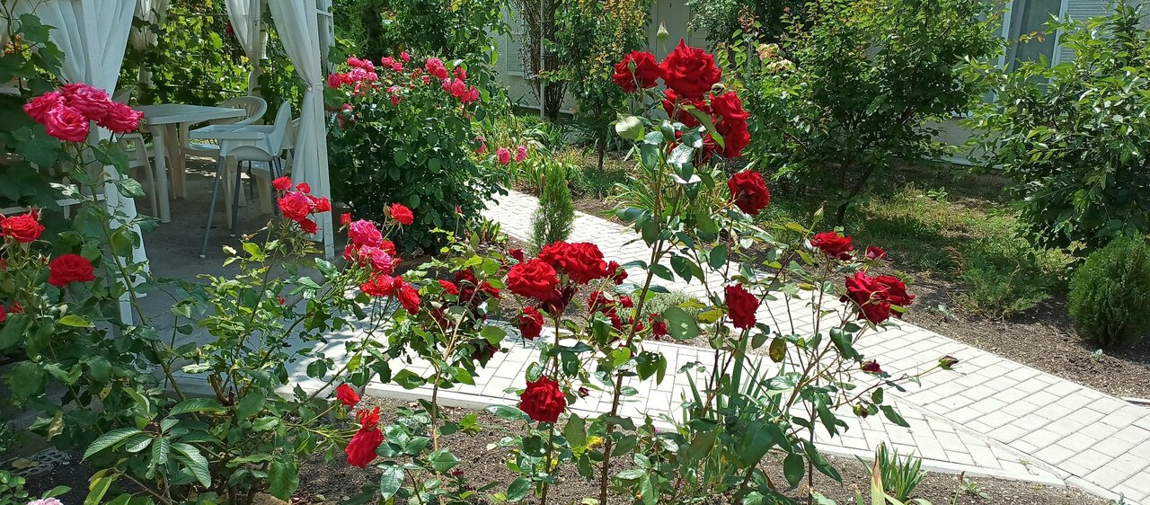 Место со своей харизмой:цветы, воздух, музыка, пение птиц (петухов в том числе). Очень уютно. Пешком до моря 20мин. Хозяйке Ольге огромная благодарность!