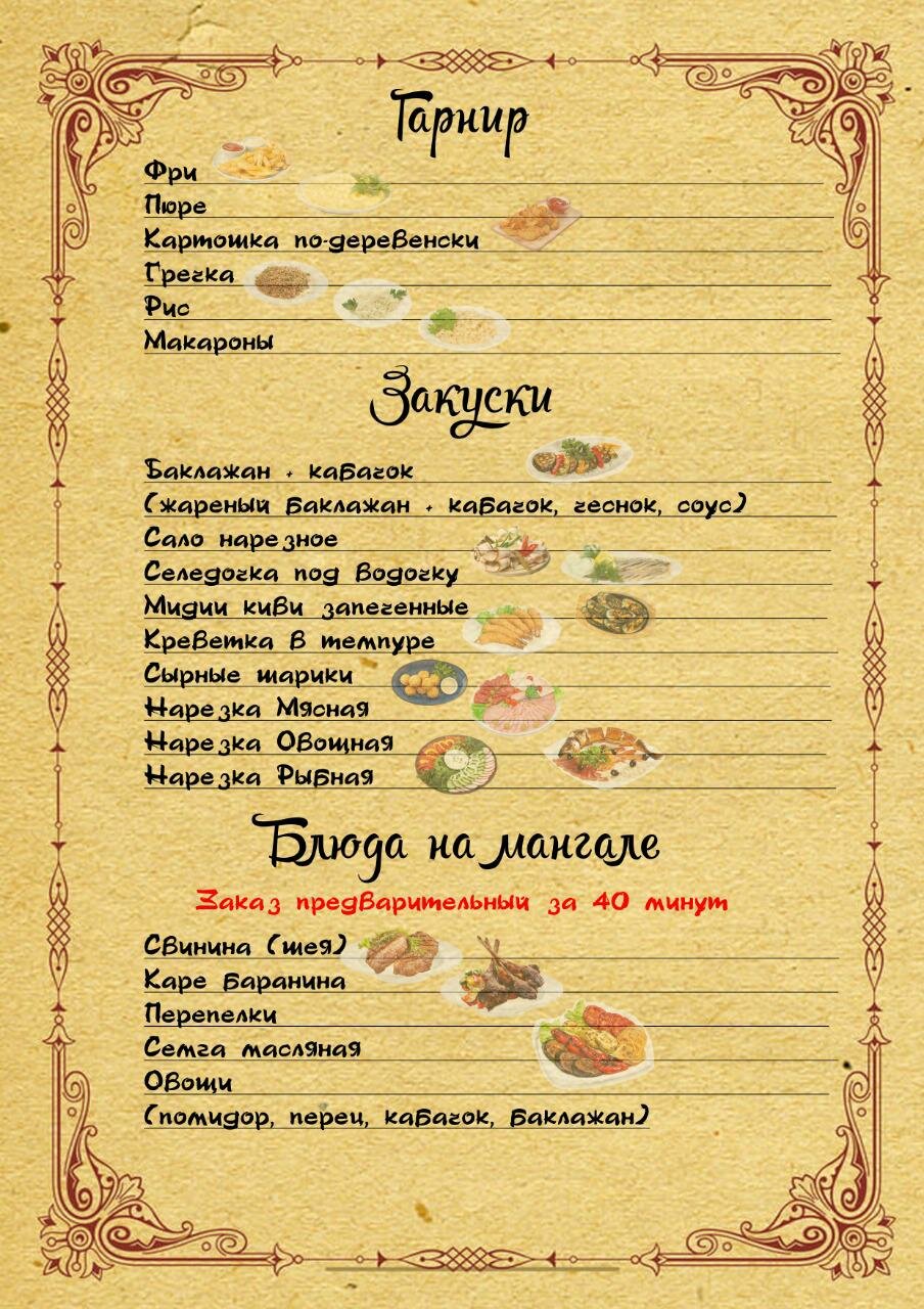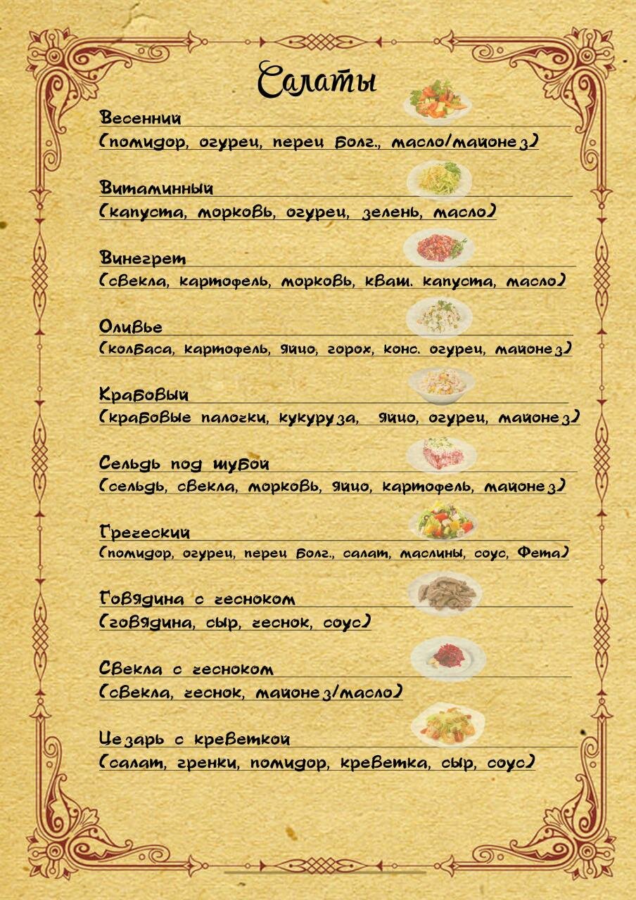 - Небольшое меню в столовой