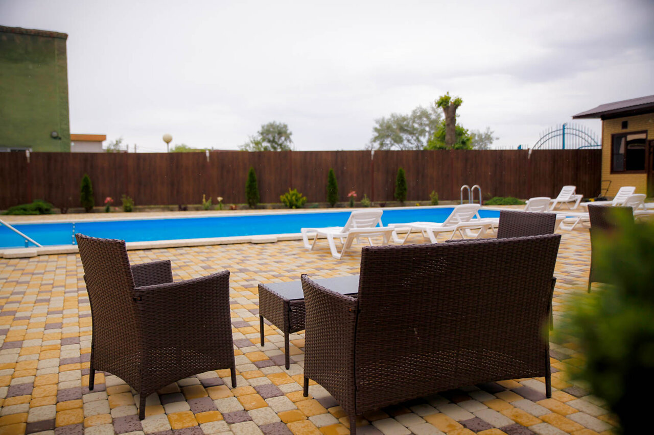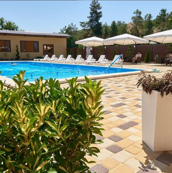 Очень хорошее место, были летом 2021года,можно и самим пожарить шашлык, а можно у них покушать, очень вкусно готовят, большой бассейн, столики, в номере все удобства, до моря 1мина,очень удобно, тихо, спокойно, хозяева очень приятные люди