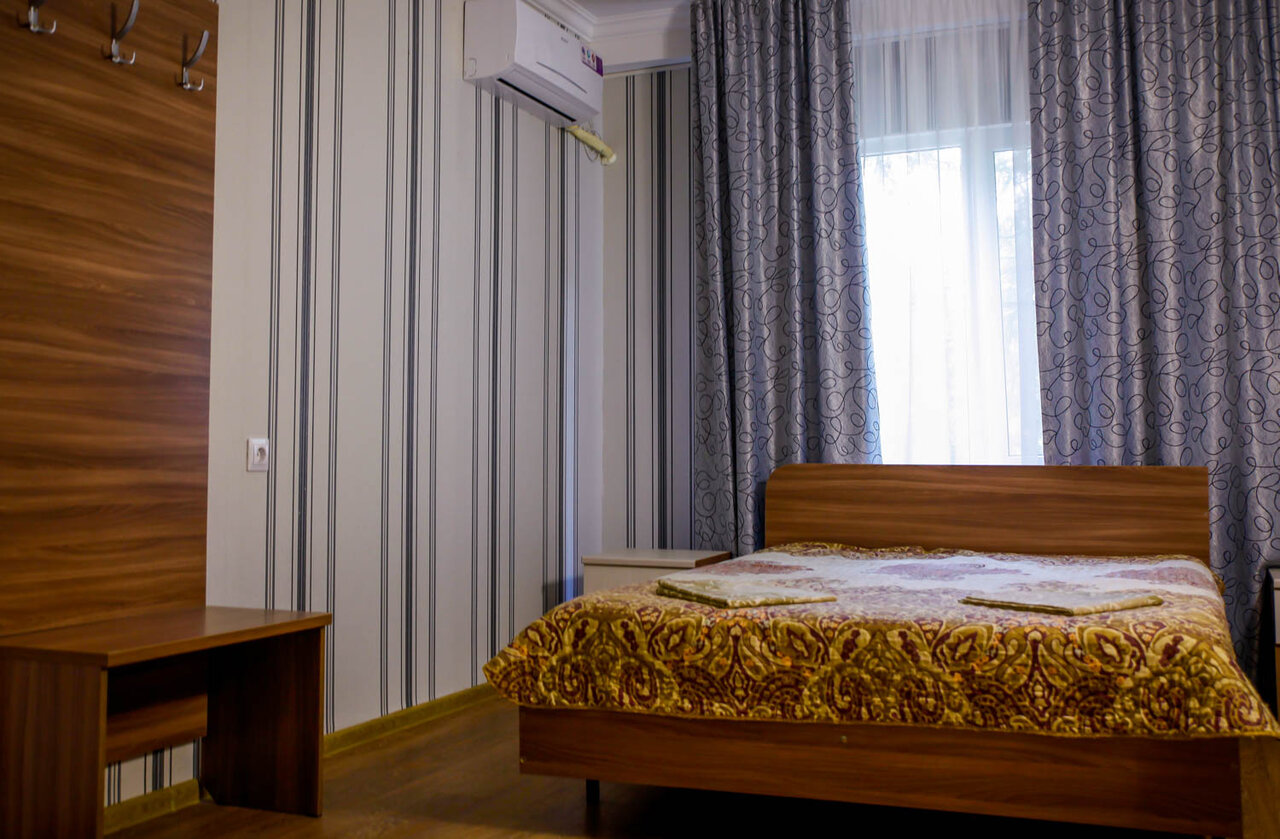 Номер оснащен: Сплит-система, телевизор, электрочайник,шкаф/р, 20 цифровых каналов,WiFi-Интернет,ночной светильник,холодильник, гардероб, двуспальная кровать, обеденный стол,Холодная и горячая вода круглосуточно.смена постельного белья 1/7