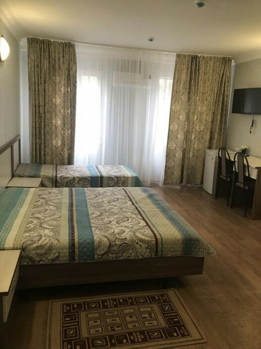 Номер оснащен:Сплит-система,телевизор, электрочайник,шкаф/р, 20 цифровых каналов, WiFi-Интернет, ночной светильник, холодильник,гардероб,двуспальная кровать,односпальная кровать, обеденный стол,Холодная,горячая вода круглосуточно.