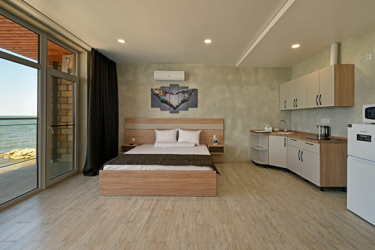Место ооочень красивое с номера открывается вид на море просто шикарный, в самом номере всё новое и всё продумано до мелочей вплоть до сушилки для белья! Хозяйка очень доброжелательная! Территория ухоженная , шезлонги мега крутые деревянные в этом огромный плюс! есть небольшая стоянка для автомобилей! пляж перед домом отличный не многолюдный, глубина не сразу для отдыха с детьми самое то! возле каждого номера стоит стол со стульями если хотите попить кофе под шум моря, а не в комнате и насладиться морским воздухом! А какие закаты открываются просто уфффф мурашки обеспечены!в общем место 10 из 10 !
