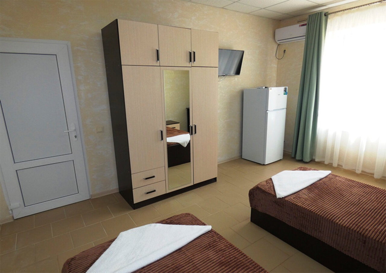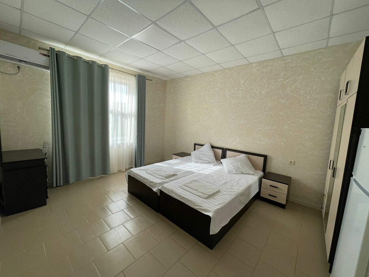 Отдыхали в конце июня 2024г.в двухкомнатном номере.Комнаты большие,в каждой сплит и тв.Ремонт,мебель,сантехника новые.Все чисто,аккуратно и со вкусом.На территории парковка под окном(территория закрытая),батут и большой каркасный бассеин с лежаками.Хозяйка Ксения моментально решает все возникшие вопросы.Море в одной минуте от корпуса,ночью из номера слышно шум волны.Пляж благоустроенный и немноголюдный.В шаговой доступности сетевые магазины,рынок,столовые,кафе,парк развлечений,дельфинарий и океанариум.Отличный вариант для семейного отдыха!