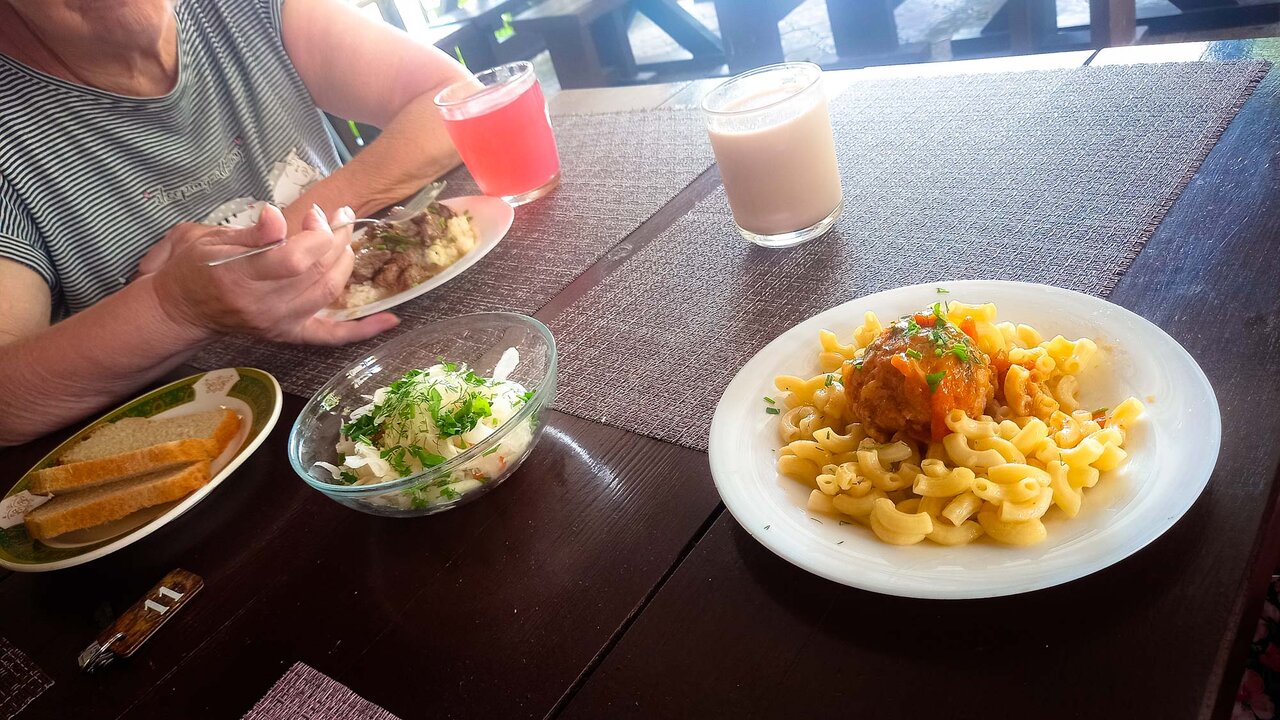 Особенная атмосфера отдыха. Все постояльцы здороваются, делятся впечатлениями об отдыхе. Отличный сервис. Вполне приемлемая цена за двухкомнатные номера с душем, кондиционерами, холодильником и бассеином во дворе. В этом году не работал повар. Можно было готовить самостоятельно. Но, при огромном количестве кафе в 3-5 минут ходьбы, я решила не готовить.
