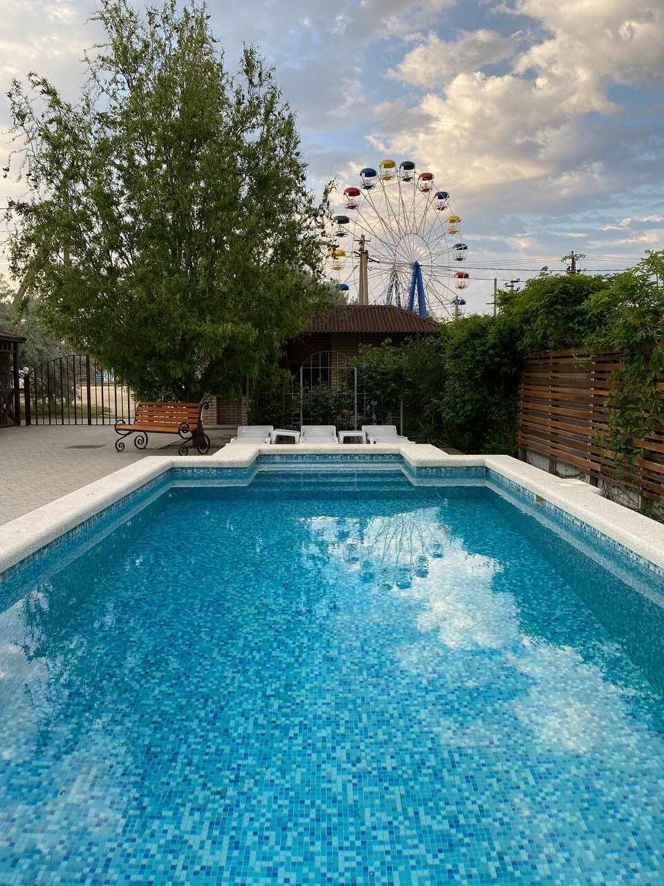 Очень понравилось. Очень уютно как дома. В доме прохладно , в каждой комнате есть сплит-система, телевизор. Отличная кухня. Класный басейн. В бассейне водичка всегда чистая. Очень понравилось приедем ещё.
