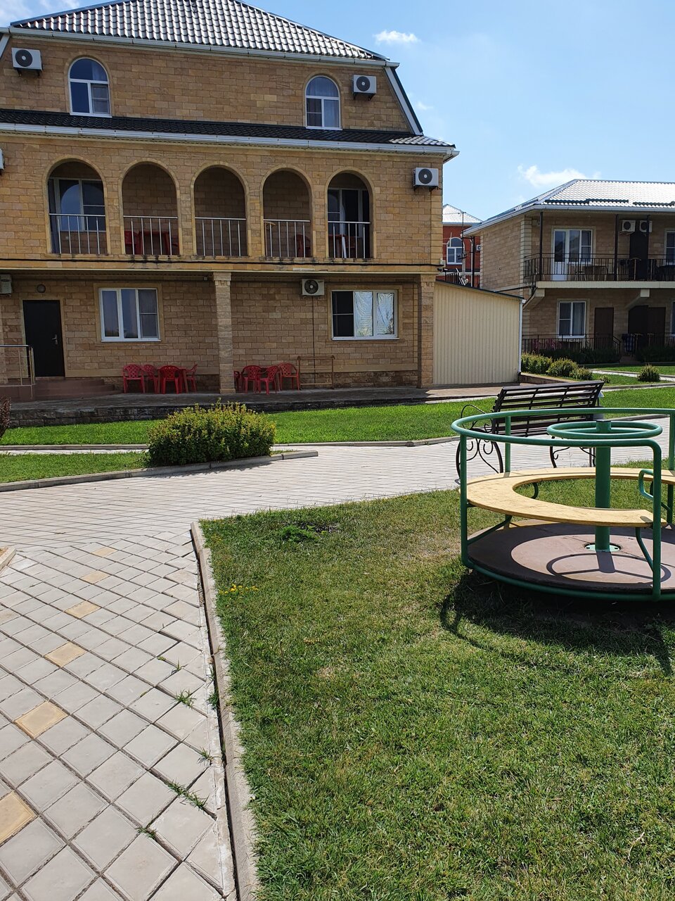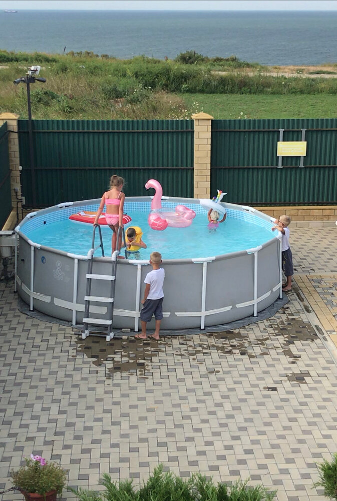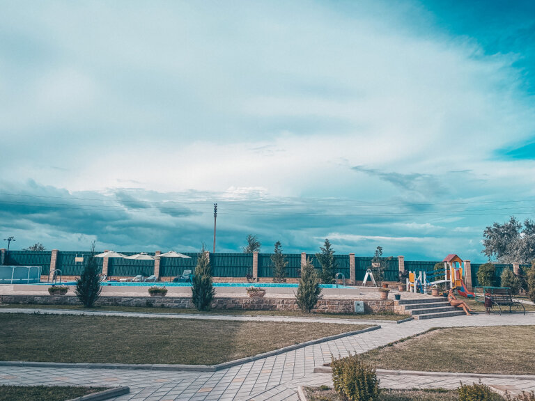 Мы остановились в 4х-местном номере, очень просторный номер и всего три розетки, одна для холодильника, одна для телевизора и кондиционера, чтобы зарядить телефон нужно выбрать что отключить. Шикарный, чистый бассен для взрослых, достаточно глубокий (я с ростом 158см до дна не достала) и детский небольшой бассейн с тёплой водой. Территория благоустроенная, всё очень чисто и приятно, столовая на территории дома. Отличное место для отдыха, правда дороговато.