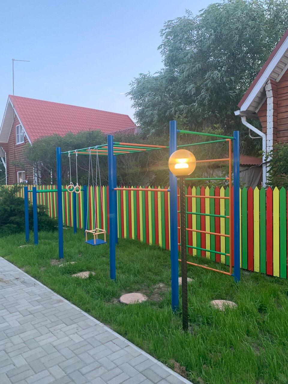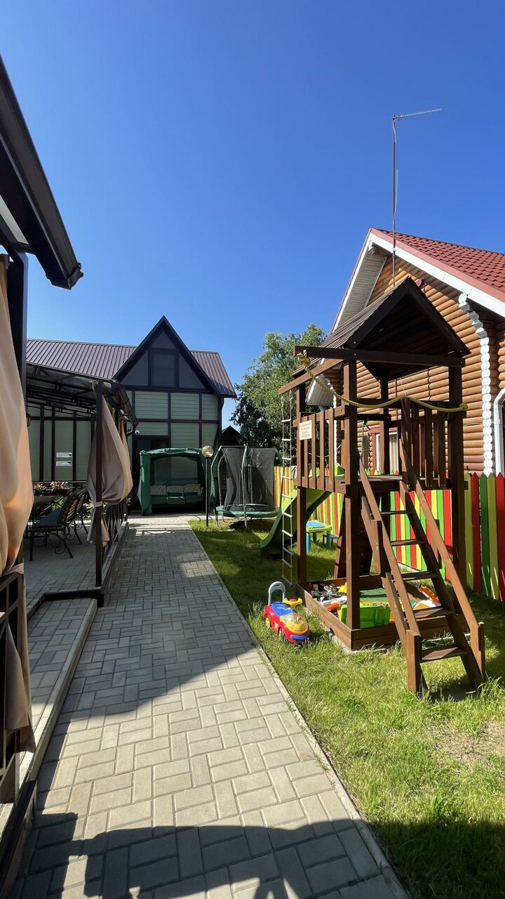 - Детская площадка, батут, качели, турники.