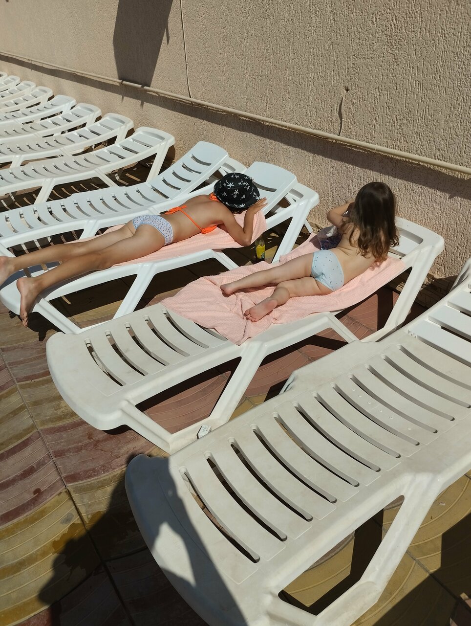 Хорошая гостиница, чисто, уютно, большой чистый бассейн, для малышей есть детская площадка. В номерах есть нельзя, но возле номера столик с лавками на улице. До моря минут 15 через торговые ряды