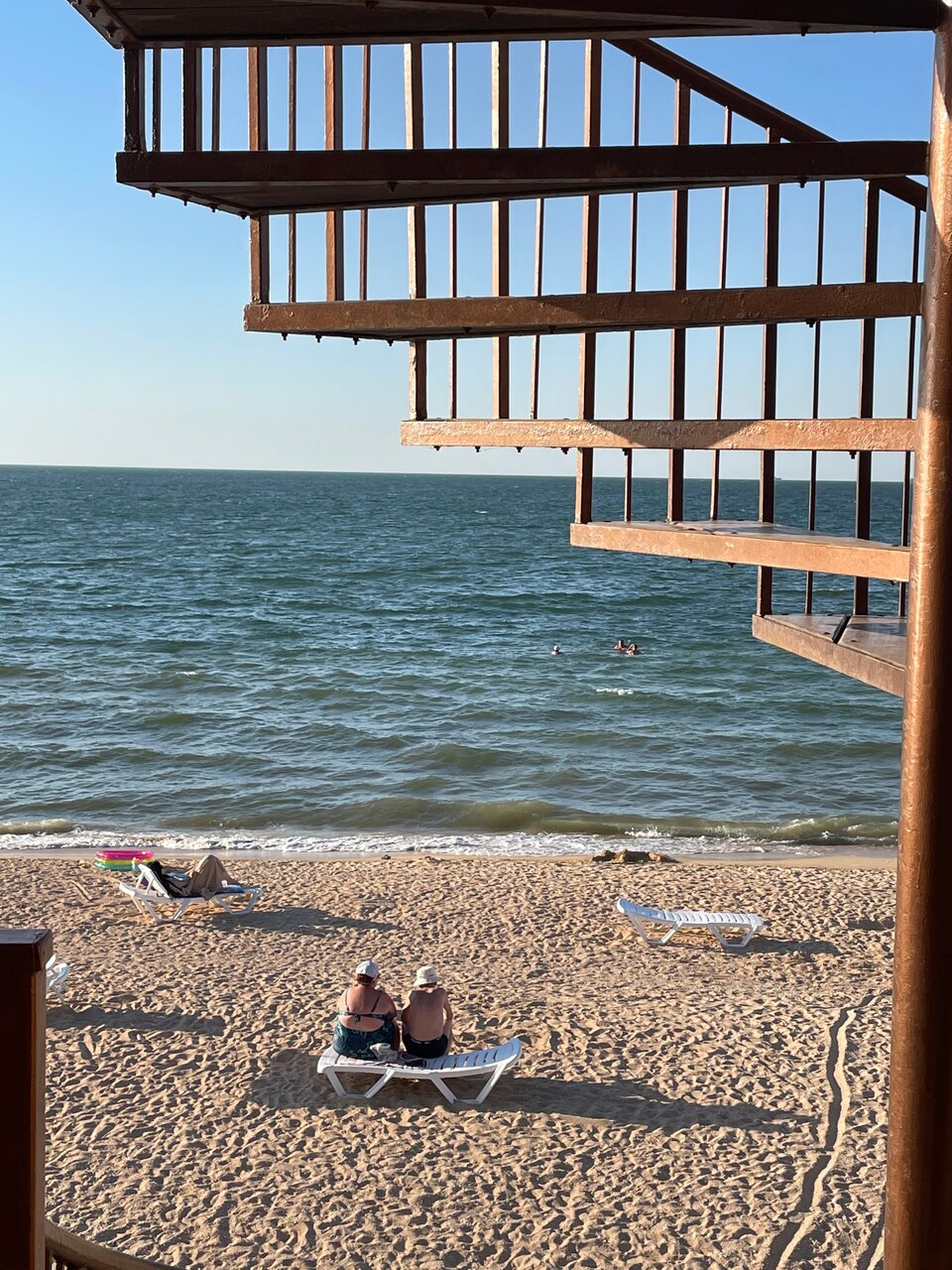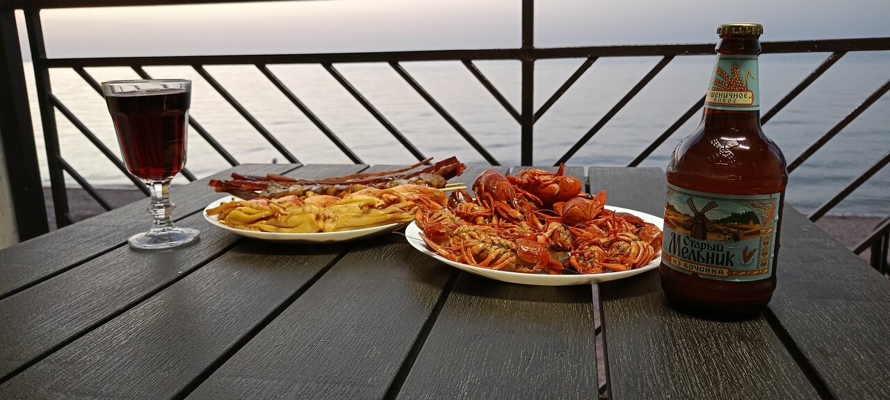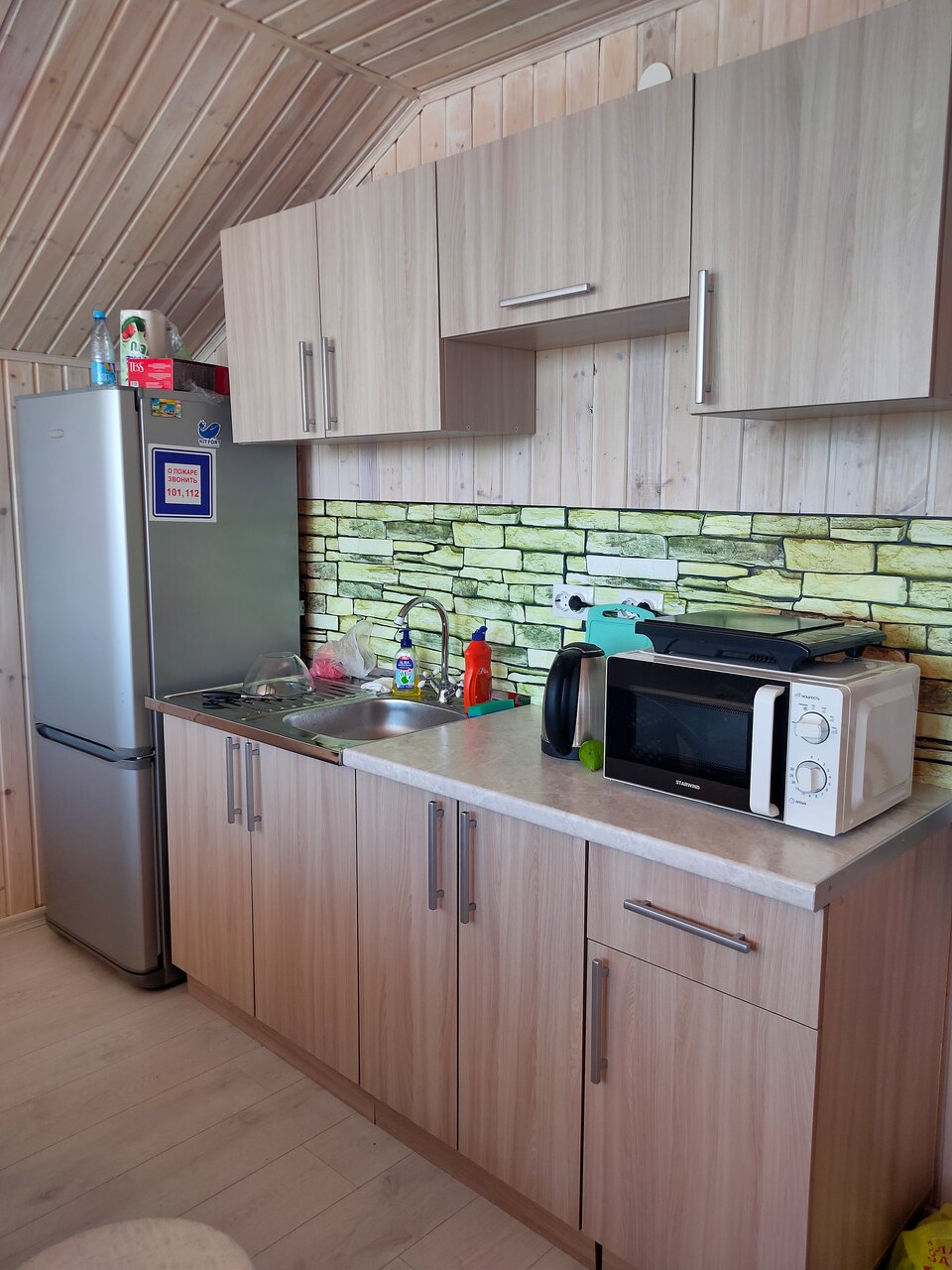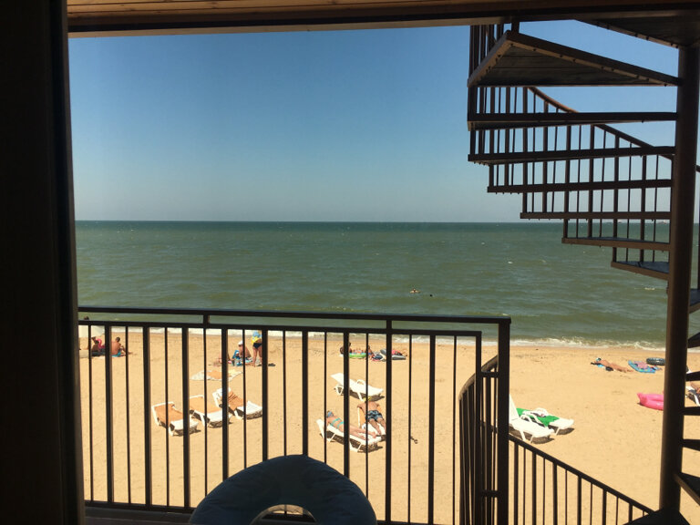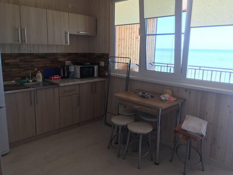 Гостиница отличная, в номере есть все для отдыха семьёй. Хорошая кухня, плита, посуда, холодильник с морозильной камерой, стол и стулья. На открытой веранде стол, диванчик и два стула. Сразу сверанды спуск к морю. Сон под шум прибоя, незабываемо. Вода в море чистая с утра, к обеду появляются водоросли в виде мха. Сегодня появились мелкие горошки будущих медуз. Гостиница супер, советую.