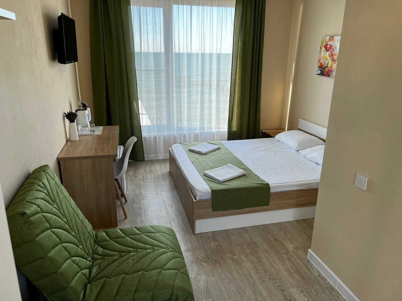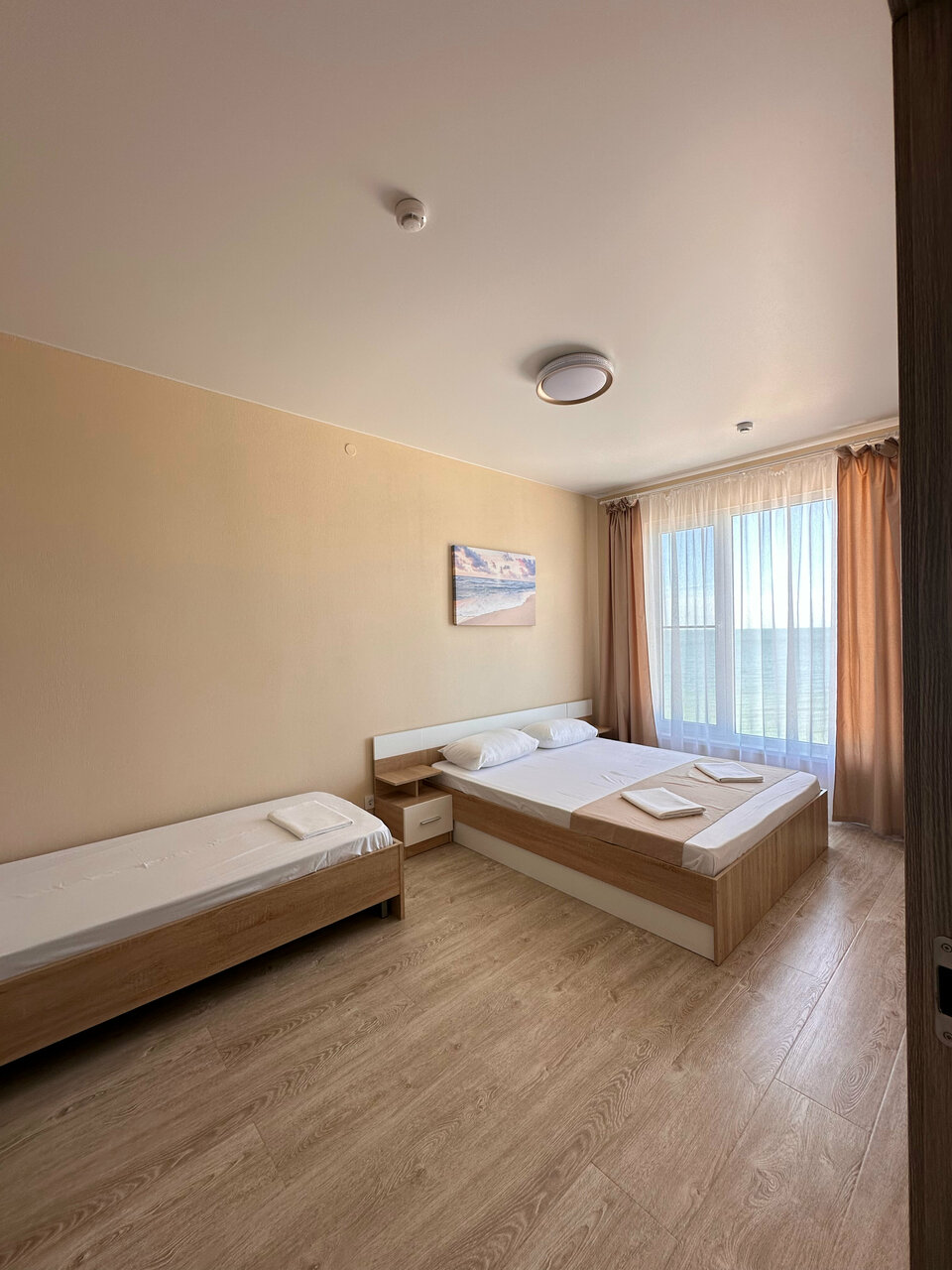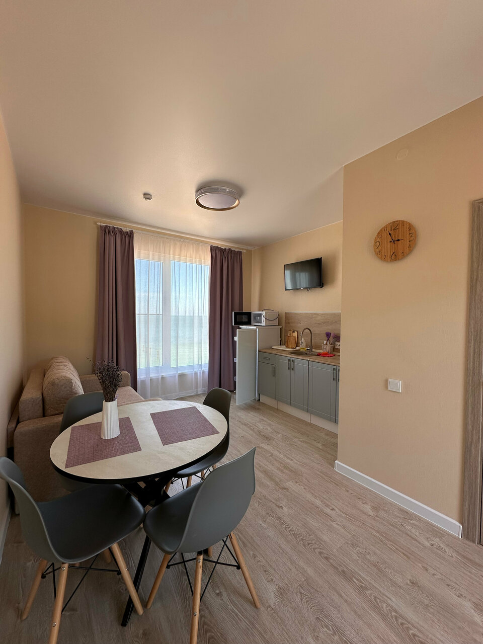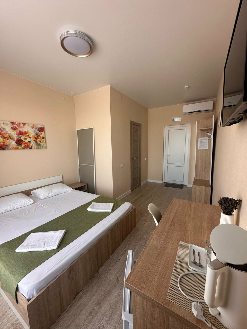 Это лучшая гостиница, в которой я побывала в России. Панорамные окна, все чистое, новое, светлое. Хозяйка отеля, и помощница — просто чудо, во всем идут на встречу, любезные! Пляж песочный, закат и рассвет видно в окно.