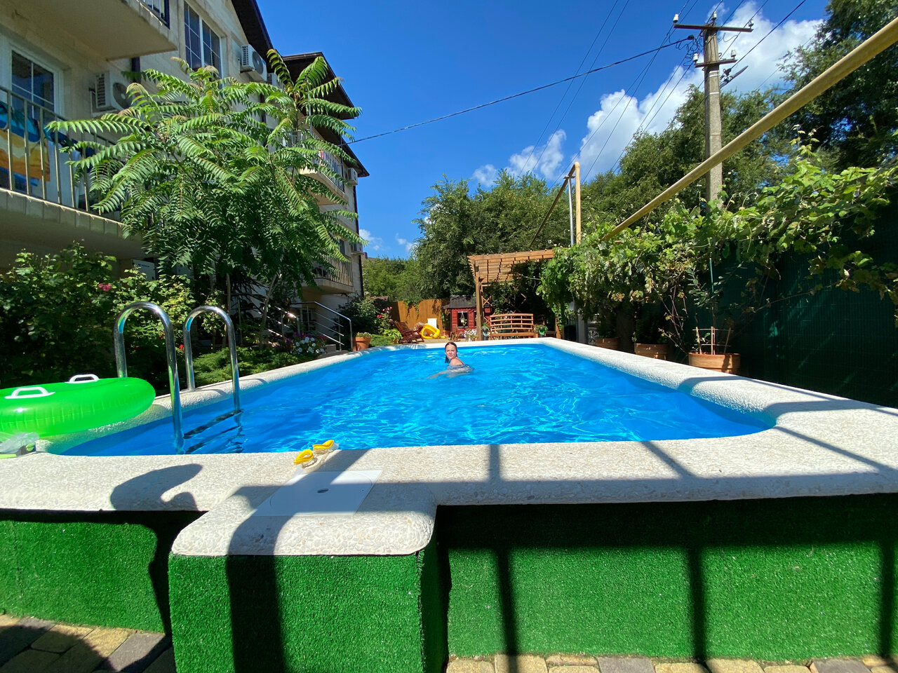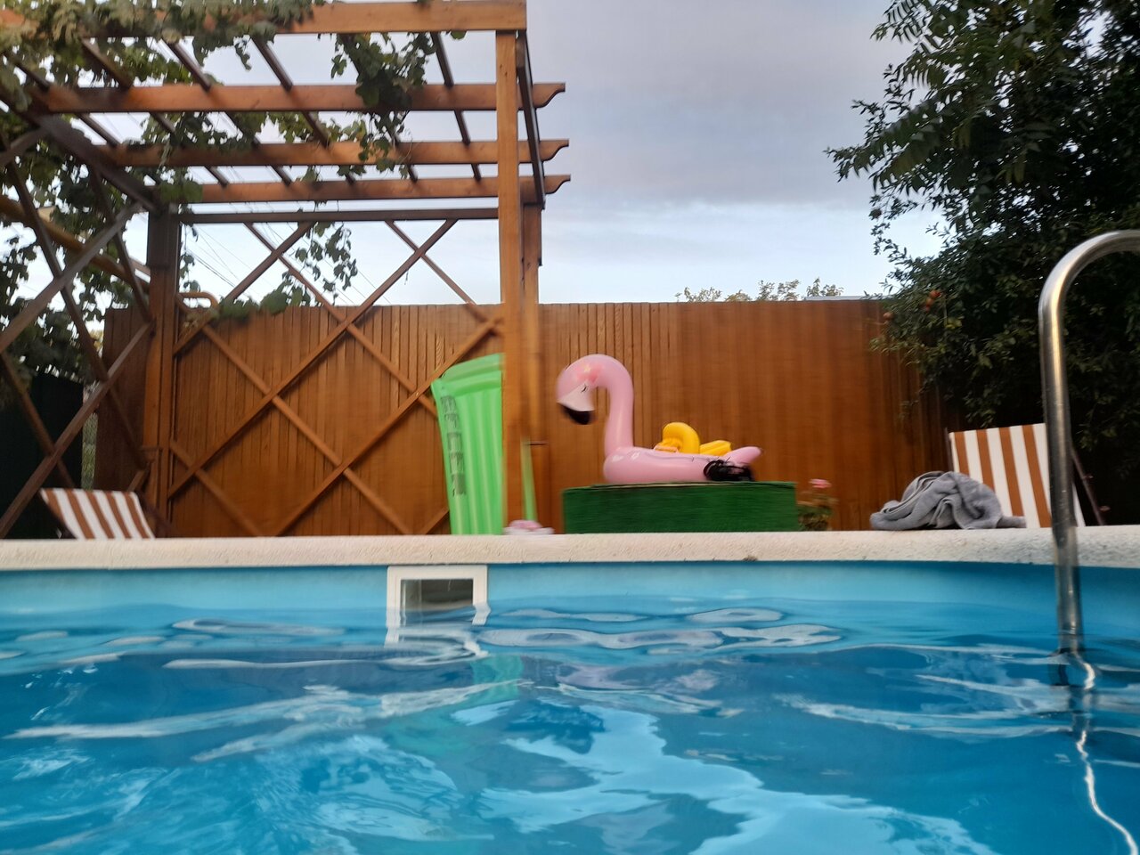 Приятная обстановка, очень хорошее обслуживание. Чисто. Ежедневная уборка. Есть возможность заказа еды на месте. Подогреваемый бассейн.