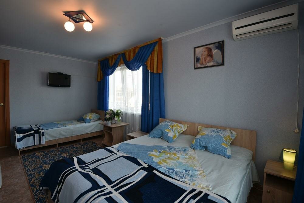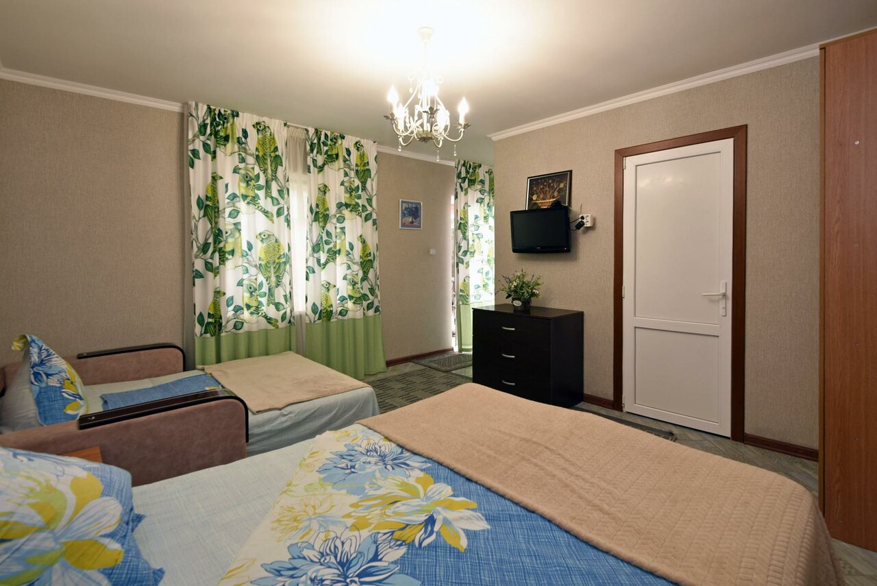 Отличный гостевой дом территория чистая,ухоженная,номера чистые с отличным ремонтом. Кухня,посуда есть. Магазины и море рядом.